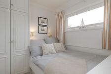 Ein separates Schlafzimmer mit einem bequemen Bett (140x200) sorgt für eine erholsame Nachtruhe. Das moderne Badezimmer mit Badewanne und Haartrockner erlaubt Ihnen, sich zu entspannen und frisch aufzutreten, bevor Sie den Tag auf Sylt erobern. Zu weiteren Annehmlichkeiten zählen zudem eine Waschmaschine, Bügeleisen und die schnelle Internetverbindung über WLAN, damit Sie immer in Verbindung bleiben können.