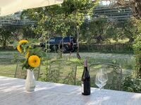 Garten, Wiese, Parkplatz, Ruhe und Komfort. Alle Zimmer sind klimatisiert. Jede Ferienwohnung mit Wasch- und Spülmaschine. Freies Internet.