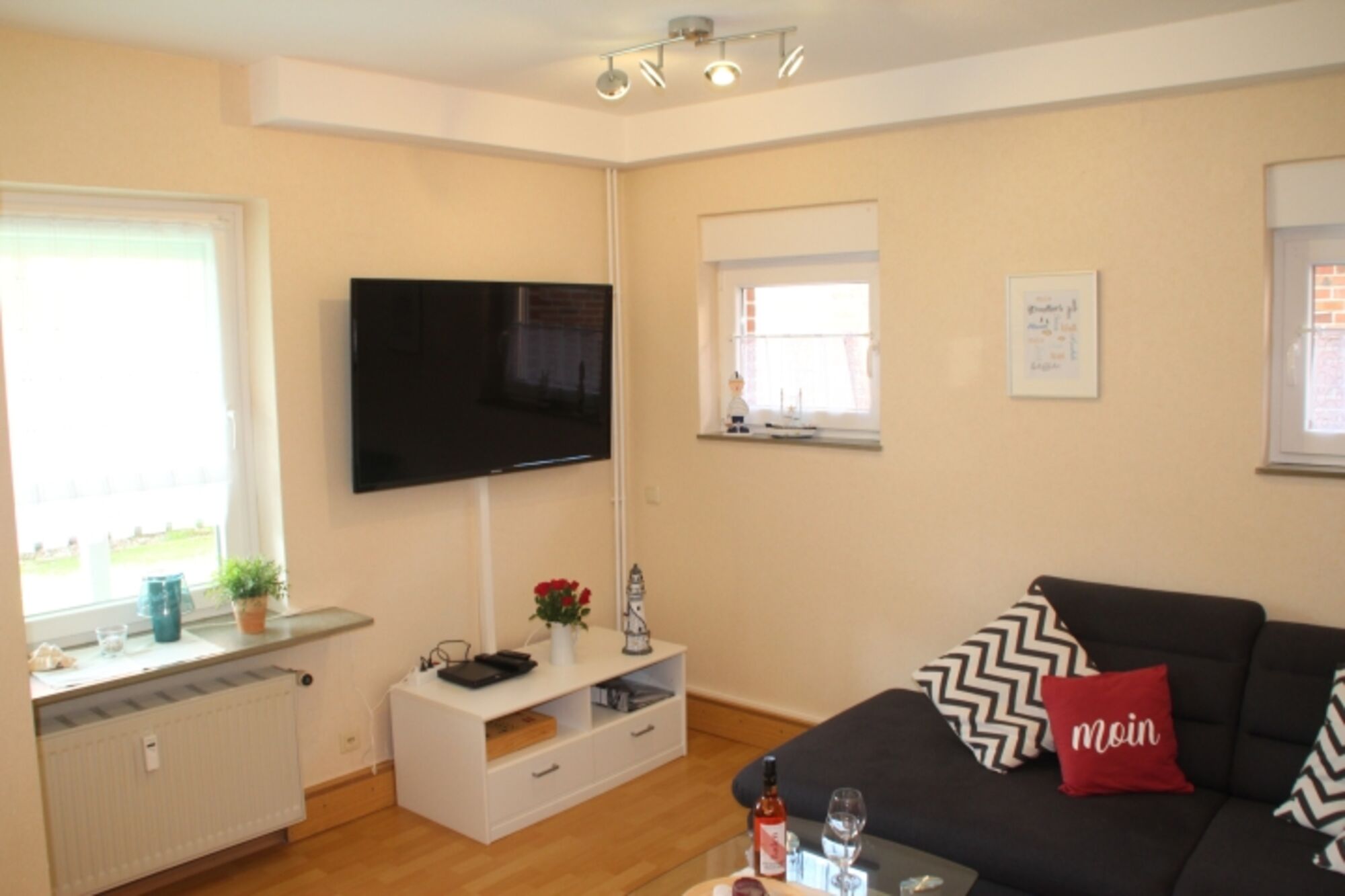 Unsere helle und einladende Ferienwohnung befindet sich im Erdgeschoss des „Hauses am Sandstrand“, nur wenige Meter vom Deichübergang zur Familienlagune entfernt. Sie bietet Platz für bis zu 5 Personen. Auch Ihr Hund ist herzlich willkommen.