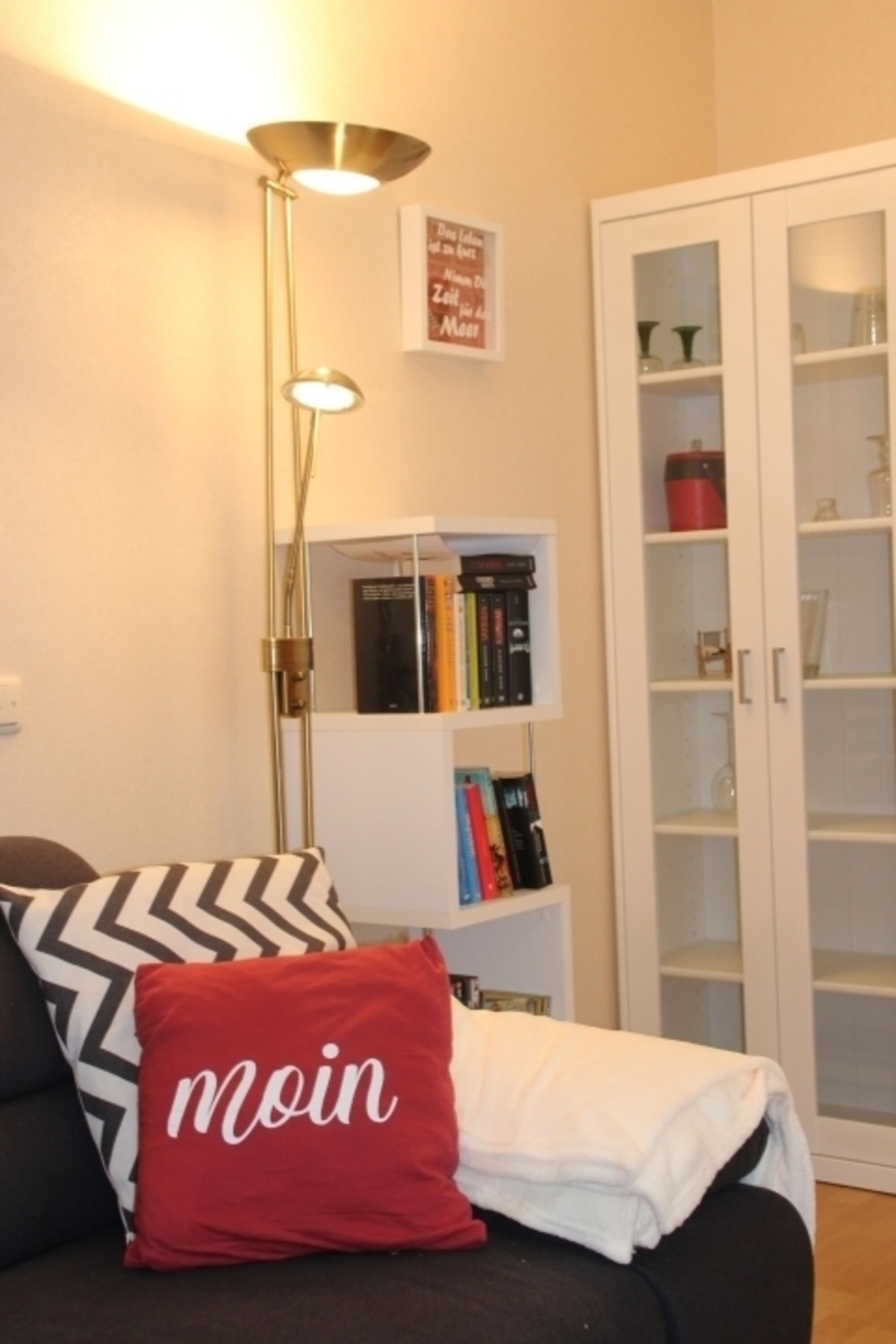 Im Wohnzimmer erwarten Sie einen Flat-TV, einen Blu-ray-Player sowie eine Auswahl an Büchern und Spielen. Die Couch bietet außerdem einer fünften Person einen komfortablen Schlafplatz.