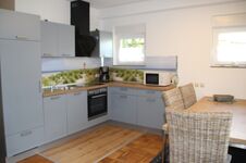 Die großzügige Essküche ist unter anderem mit einem Geschirrspüler, einem Kühlschrank mit Gefrierfach und einem Backofen ausgestattet. Am großen Esstisch finden 5 Personen Platz.