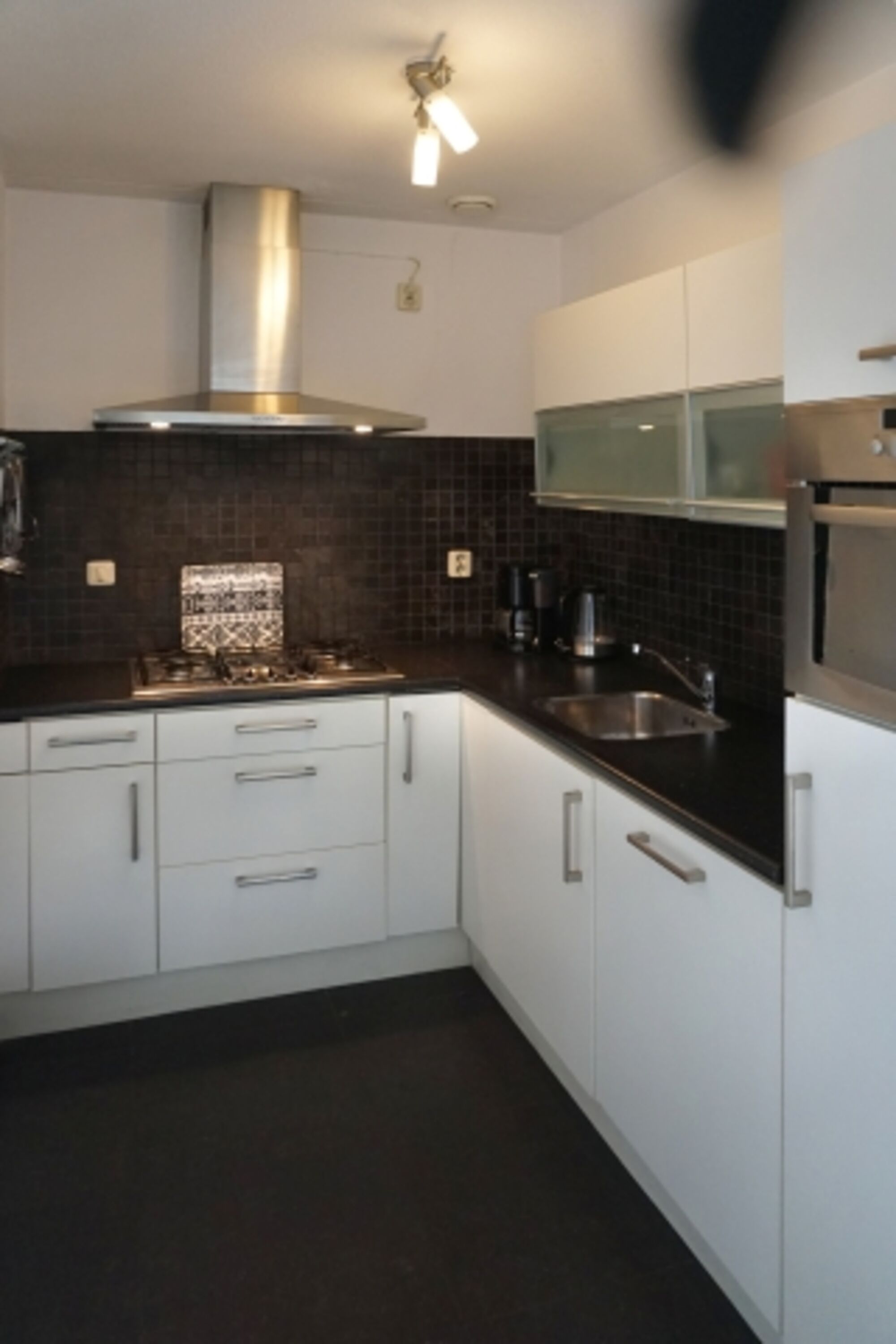 Dunstabzugshaube, Kühlschrank mit Gefrierfach, Senseo-Kaffeeautomat, Eierkocher, Mixer