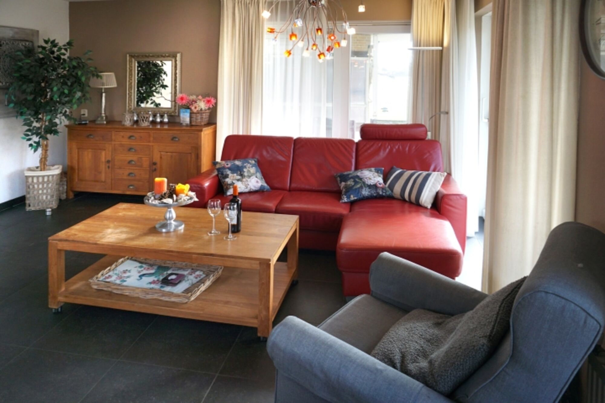 Die “Residence Juliana 32” hat zwei Schlafzimmer und bietet Platz für fünf Gäste. Wenn Sie das Haus betreten, gelangen Sie durch den Flur in das gemütliche Wohnzimmer Das Wohnzimmer wurde mit einer gemütlichen Essecke und einer schönen Sitzecke ausgestattet. Von hier aus hat man freie Sicht auf die Dünen und den in der Nähe befindlichen Park. Angrenzend an das Wohnzimmer finden Sie die komplette Küche mit Geschirrspüler, Gasherd, Backofen, Kombi-Mikrowelle und Kühlschrank mit Gefrierfach. Die Küche verfügt über eine Kaffeemaschine sowie eine Senseo-Kaffeemaschine und einen Wasserkocher. Die Wohnung verfügt über zwei Schlafzimmer. Das erste Schlafzimmer finden Sie beim Betreten der Wohnung zu Ihrer Linken. Dieses stilvolle Schlafzimmer wurde mit einem komfortablen Doppelbett ausgestattet. Das zweite Schlafzimmer befindet sich schräg gegenüber dem ersten Schlafzimmer. Dieses helle Schlafzimmer wurde mit ein Einzelbet und ein Etagenbett ausgestattet. Neben dem zweiten Schlafzimmer befindet sich das gepflegte Badezimmer mit Badewanne, separater Dusche, Waschbecken und Toilette.
