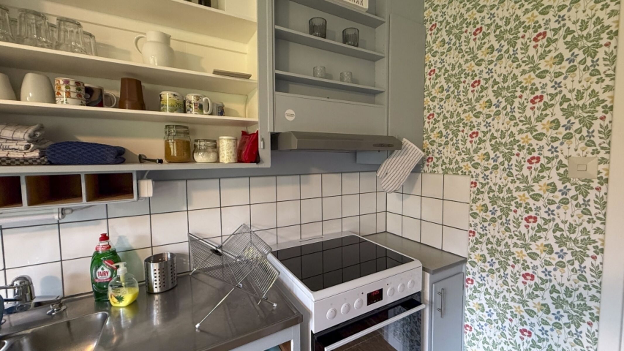 Die Küche hat einen kleinen Essbereich mit Tisch und Stühlen. Alles, was man üblicherweise rund um die Zubereitung von Speisen benötigt, ist vorhanden. Fragen Sie uns, wenn Sie etwas Konkretes benötigen!