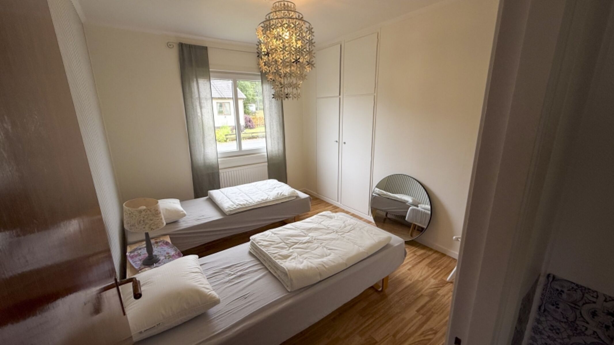 Das Haus hat zwei kleine Schlafzimmer. Jeweils mit zwei Einzelbetten, die in einem der Zimmer zu einem Doppelbett zusammen gestellt sind. Jedes der Zimmer hat einen Wandschrank.