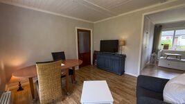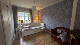 Das Wohnzimmer ist 1,5 Zimmer groß. In dem halben Zimmer steht ein Bett (IKEA Hemnes), das ein bisschen an einen Alkoven erinnert. Hier kann man es sich sitzend oder liegend gemütlich machen. Bei Bedarf kann das Bett zu einer Liegefläche von 160x200cm umgebaut werden. Ideal zum Faulenzen, Fernsehen, Lesen oder Gamen (eine Konsole muss man allerdings mitbringen).