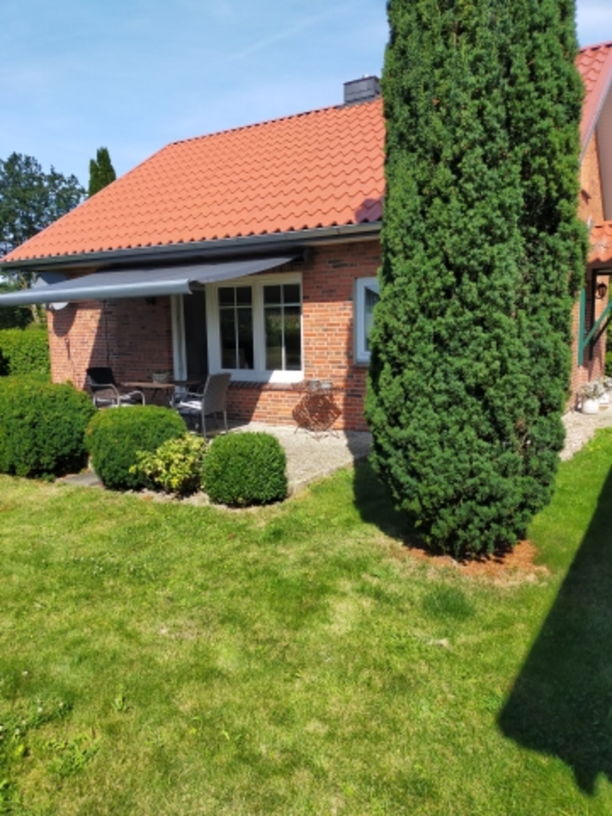 Das Haus präsentiert sich in einer ruhigen, natürlichen Landschaft, umgeben von üppigem Grün und einem gepflegten Garten, der zum Entspannen einlädt. Der Nord-Ostsee-Kanal ist in 200 Metern zu erreichen, man kann dort endlos laufen, Fähre fahren und Schiffe bestaunen, in allen Größen und der Hundegast kann immer mit!