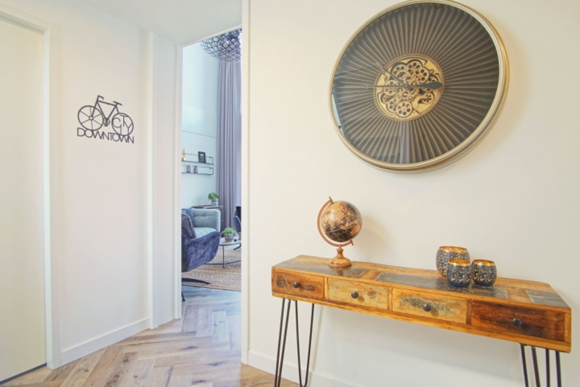 Induktionsherd, Dunstabzugshaube, Gefrierschrank, Senseo-Kaffeeautomat, Eierkocher, Korkenzieher / Flaschenöffner, Gewürze (Salz, Pfeffer, Zucker), Mülltüten, Essplatz in der Küche, TV in der Küche