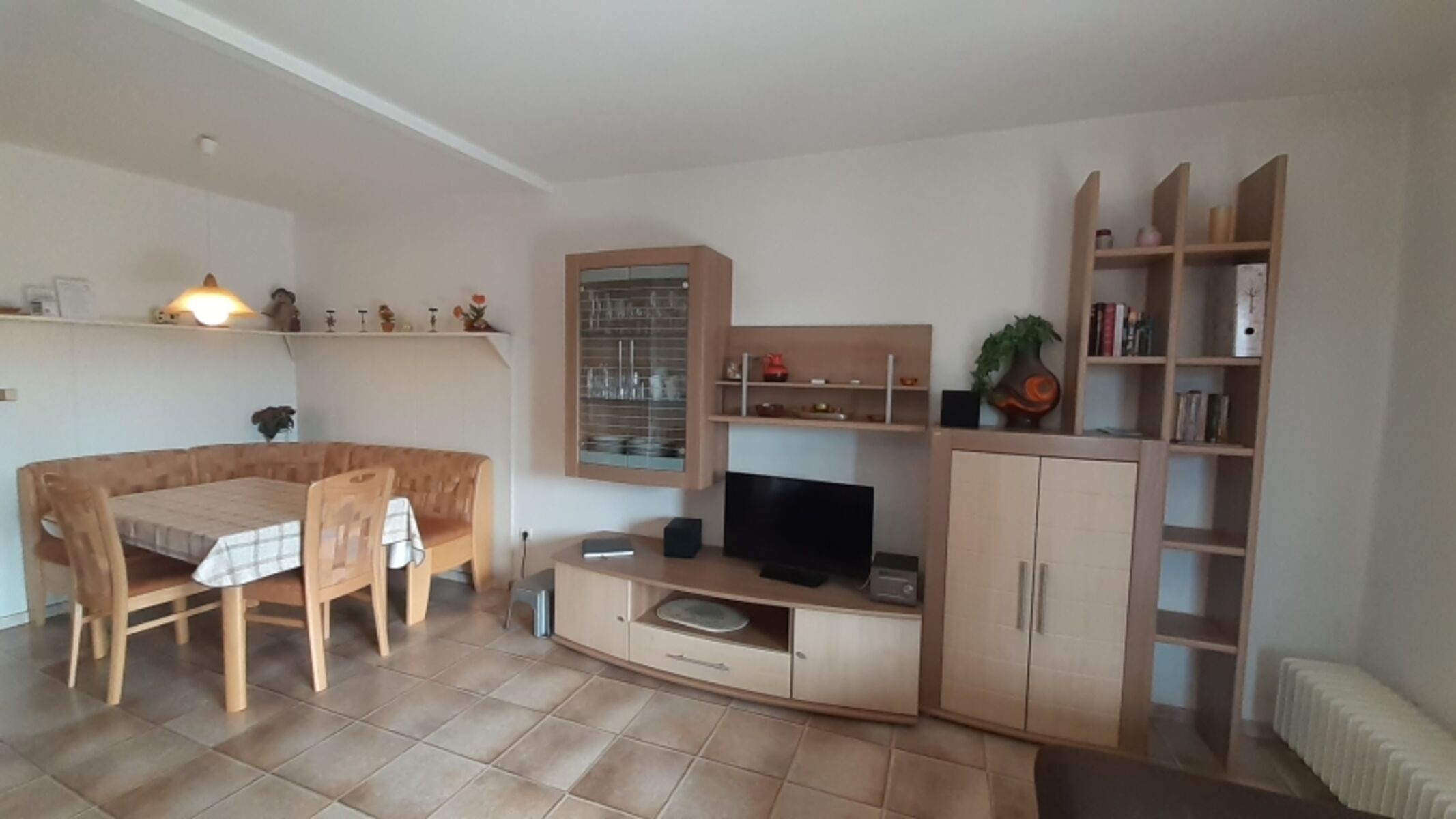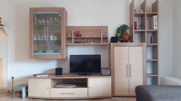 Die gemütlich eingerichtete Wohnung hat ein Wohn-Esszimmer mit Polstersitzgruppe, Eckbanksitzgruppe, TV, Stereoanlage und WLAN-Internetanschluss.