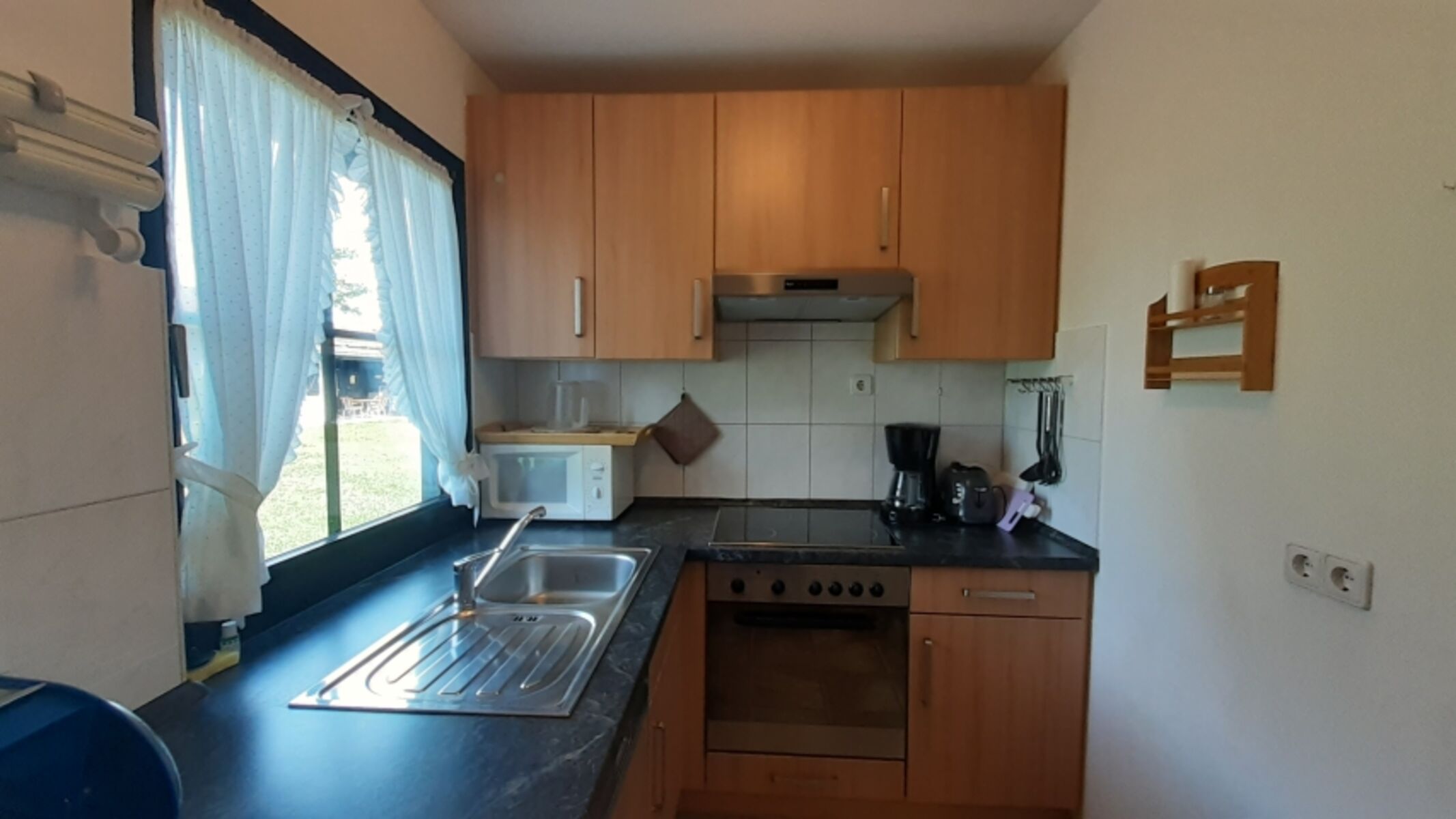 Die komplett ausgestatteter Küche hat Backofen, Cerankochfeld, Spülmaschine, Gefrierschrank, Mikrowelle, Kaffemaschinen, Toaster etc.