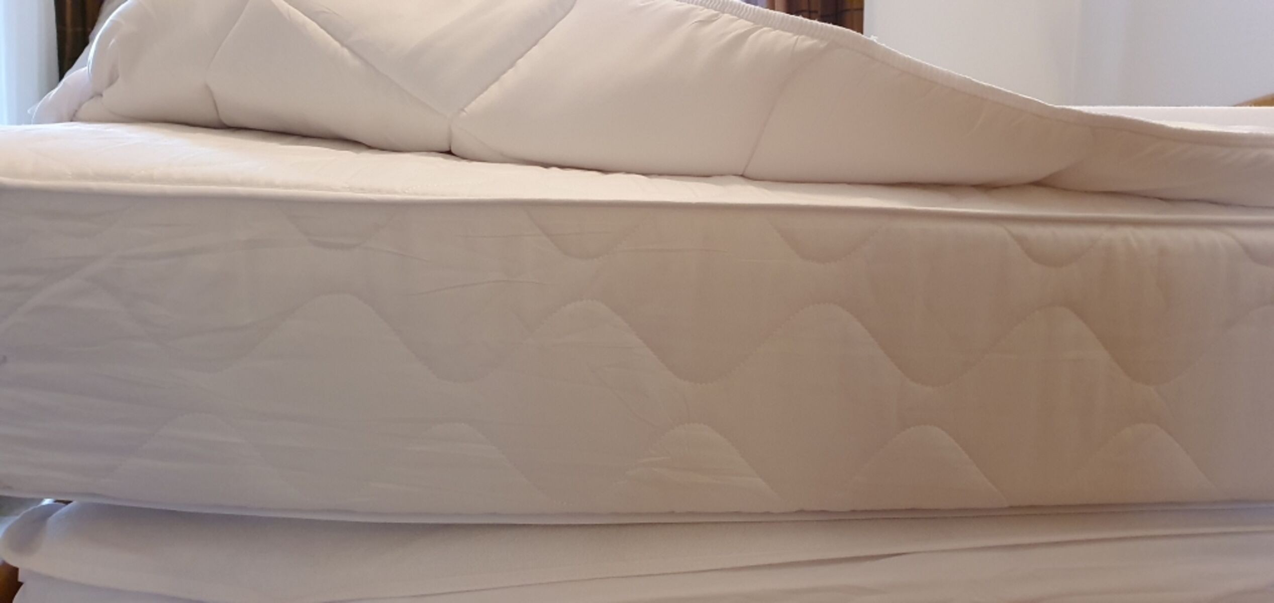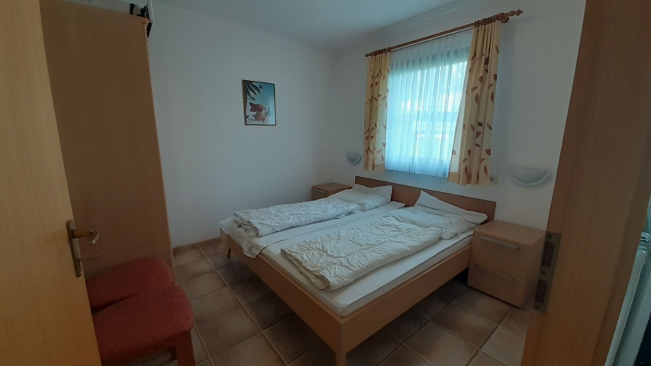 In der Ferienwohnung sind 2 separate Schlafzimmer (mit Doppelbetten 90 cm X 200 und 90 cm x 190 (und verfügbarem Kinderbett) vorhanden. Zudem gibt es ein Beistellbett und ein ausziehbares Sofa.