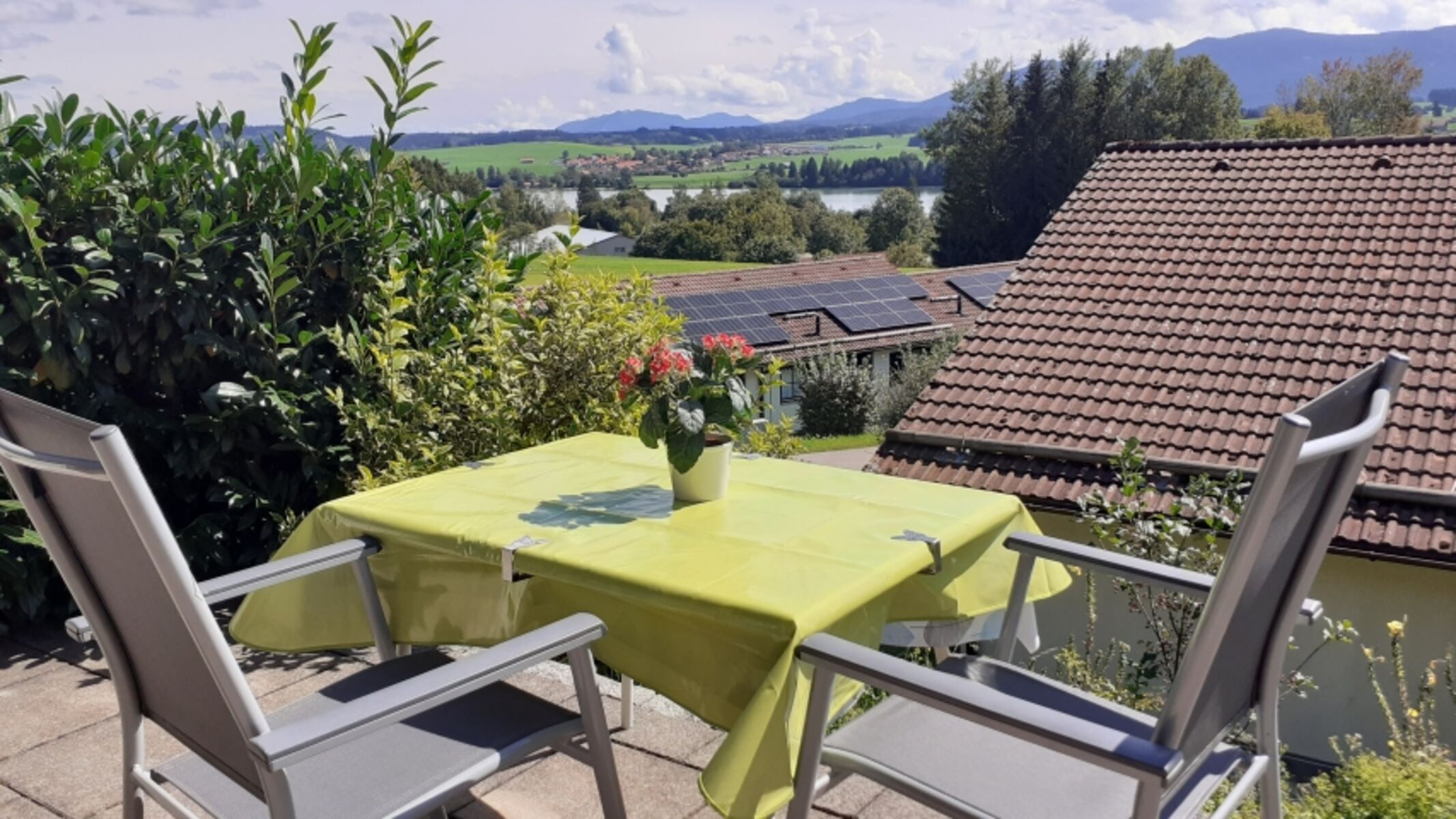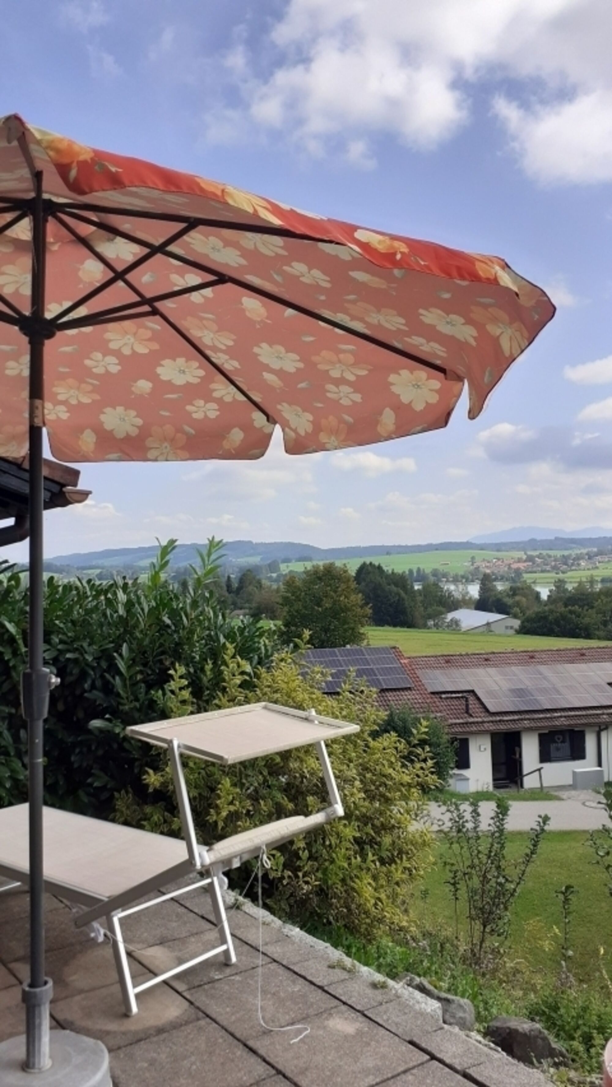 Meine zertifiziere ruhige Ferienwohnung in Traumlage mit wunderschönem Ausblick von der Terrassse ( und sogar vom Sofa :-)) auf die Allgäuer Berge und den Lechsee steht Ihnen zur Verüfgung. Im Schlafzimmer 1 garantieren neue verstellbare Lattenroste (Kopf- und Fußteil kann hochgestellt werden, Härtegrade individuell einstellbar) sowie neue 22 cm hohe Matratzen mit zwei verschieden wählbaren Härtegraden, zwei neue kuschelweiche Topper sowie neue Baumwollbettdecken und Federkopfkissen erholsamen Schlaf! Das Schlafzimmer 2 hat ebenfalls neue Bettdecken und Kopfkissen sowie zwei neue kuschelweiche Topper! Im Schlafzimmer sind Insektengitter vorhanden.