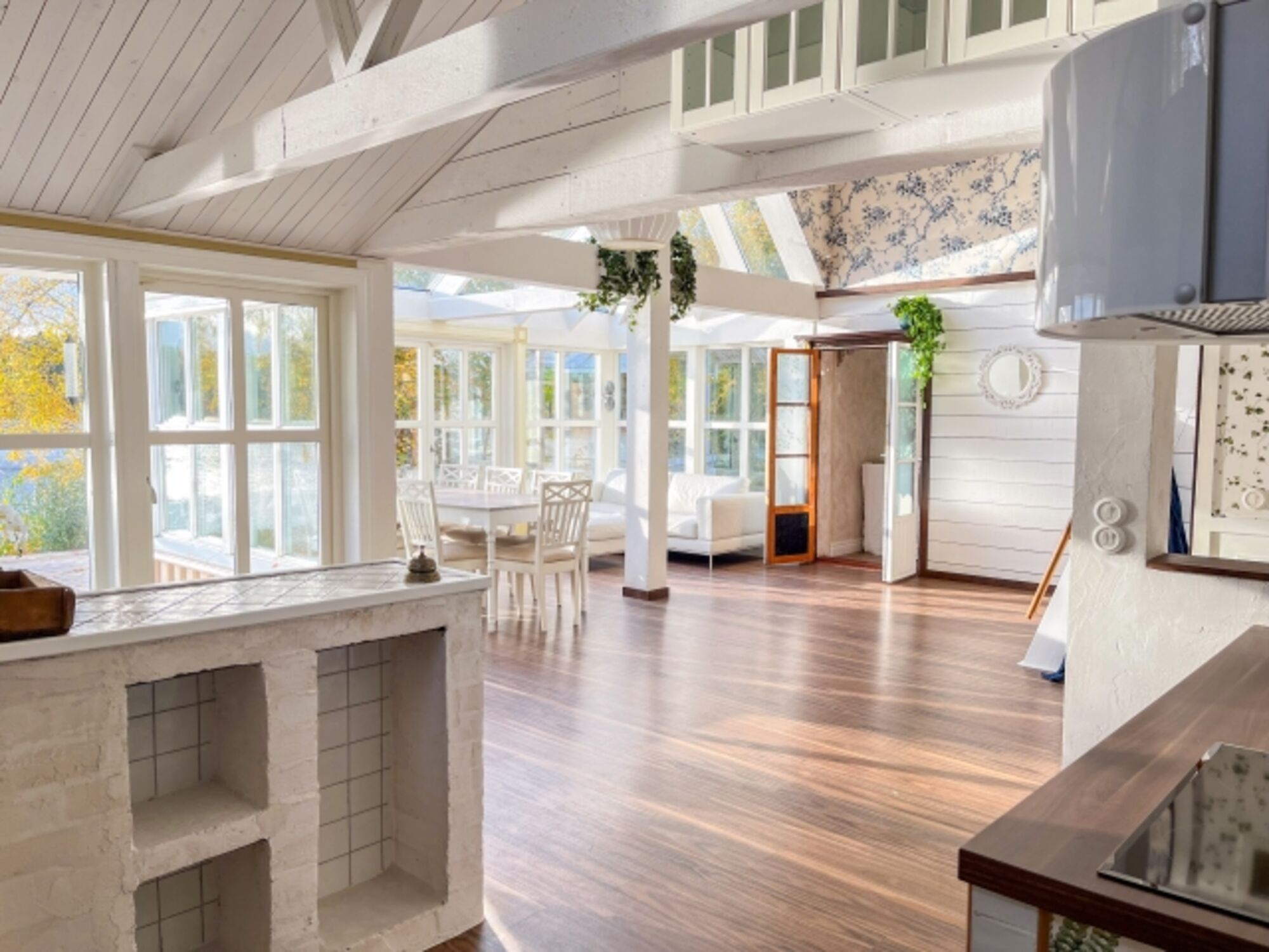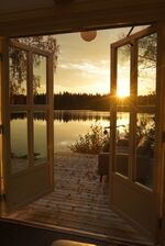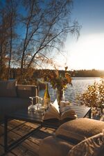 Das große, eingezäunte Naturgrundstück (nur zum See hin offen), direkt am See eignet sich so gut für einen Schwedenurlaub mit Hund. Von der großen Terrasse mit großen Esstisch haben Sie ein fantastischen Seeblick. An kühleren Abenden kan man im Haupthaus oder in dem kleinen Glashaus am See sitzen. Neben dem Steg befindet sich eine kleine sandige Badestelle an der alle baden können. Dort liegt auch die Lagerfeuerstelle, das Ruderboot mit Elektromotor und das Kanu das bereits im Hauspreis enthalten ist. Auch die Sauna die auf der anderen Seite des Stegs steht ist bereist inklusive - aus der Sauna haben Sie einen richtigen tollen Blick auf den See. Das absolute Highlight der Kristallvilla ist die holzbefeuerte Badetonne - da diese einiges an Holz und Wasser verbraucht, ist diese ein Aufpreispflichtiges optionales Extra.