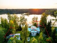 Unser Kristallvilla (Haus 15) mit Steg, Boot und Sauna, besteht eigentlich aus 2 Ferienhäusern, die gemeinsam, direkt am See, auf einem großen eingezäunten Grundstück liegen und immer nur gemeinsam vermietet werden - ideal für gemeinsam reisende Familien und größere Gruppen. Es gibt das 130m² große Haupthaus und das 70m² Gästehaus. Jedes der beiden Häuser verfügt über 3 Schlafzimmer, ein Bad mit Dusche, ein zusätzliches kleines Toilettebad, ein Wohnzimmer und eine Küche - alles ist also Doppelt vorhanden, so kan man gemeinsam Reisen, aber jeder hat seinen Rückzugsort. Das Gästehaus wird derzeit noch komplett renoviert, inklusive neuem Bad, daher kommen die Bilder vom Gästehaus sicherlich erst im Mai 2025.