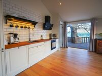 Das Haus selbst ist modern eingerichtet und verfügt über einen hohen Standard. Die Küche ist mit dem wichtigsten wir Herd, Backofen, Geschirrspüler, Kaffeemaschine, Wasserkocher und Toaster ausgerüstet. Das Schlafzimmer verfügt über eine Doppelbett und eine zusätzliche Schlafcouch - so bleibt man flexibel. Auch das Sofa im Wohnzimmer ist eine große, hochwertige Schlafcouch, so schafft man bei Bedarf schnell ein zweites Schlafzimmer. Im Herbst 2024 haben wir im Wohnzimmer noch einen holzbefeuerten Kamin nachgerüstet , der derzeit auf den Bildern noch nicht zu sehen ist. Ansonsten wird das Haus durch eine moderne Luftwärmepumpe beheizt. Im Bad finden sich Dusche, WC und Waschbecken. Darüber hinaus gibt es ein kleines Nebenhäuschen in dem sich die Waschmaschine und ein zusätzliches Gäste WC versteckt.
