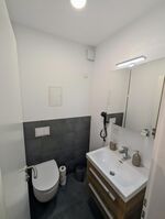 Neu gestaltetes Badezimmer mit Badewanne, Dusche etc. Hier finden Sie ebenfalls eine Waschmaschine sowie einen Trockner.