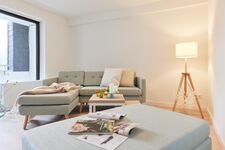 Helles, gemütliches Wohnzimmer. Hier können Sie den Abend bei einem Glas Wein entspannt ausklingen lassen und nebenbei einen Film schauen. Für die Fernsehunterhaltung dienst hier ein 50" Fernseher der über die Waipu.TV App läuft. Dies garantiert Ihnen eine große Vielzahl an Fernsehsendern und bietet Abwechslung. Eine stabile Internetverbindung ist über das frei verfügbare WLan selbstverständlich.