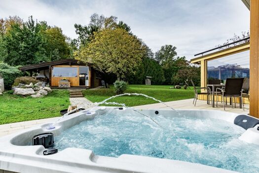 Garten-Chalet mit Whirlpool, Sauna, umzäuntem Garten