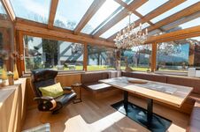 Das Premium-Chalet ist sehr großzügig, es verfügt neben Wohnraum, Küche und Wintergarten über drei Schlafzimmer mit eigenem Bad mit DU/WC auch über ein privates Hallenbad, eine Innensauna, einen ganzjährig bis zu 40° beheizten Whirlpool auf der Panoramaterrasse, eine Sonnenterrasse mit herrlichem Ausblick und eine Chalethütte mit offenem Kamin.