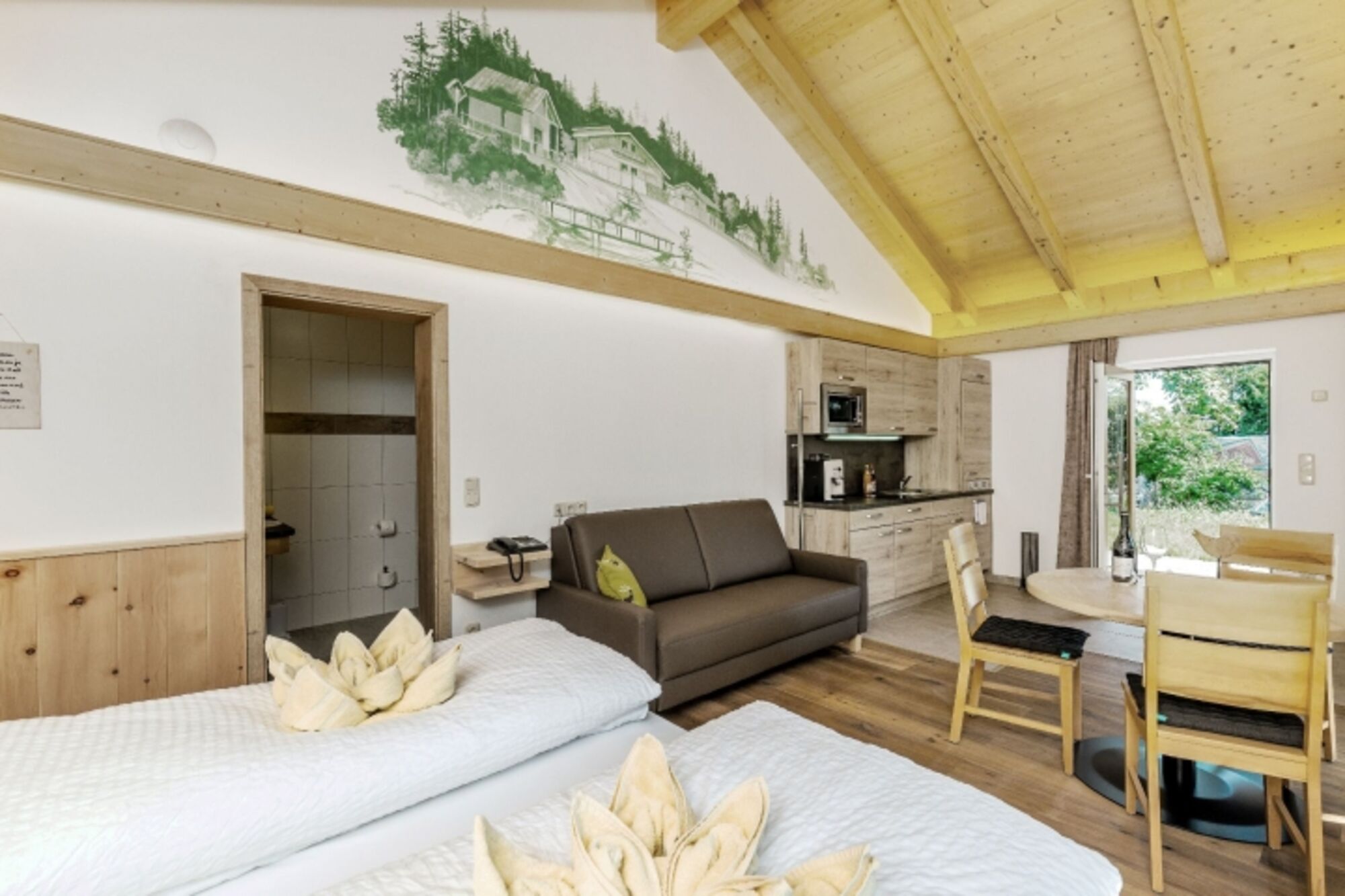 Das Appartement hat eine Wohnfläche von ca. 30-38m² auf einer Etage (im Erdgeschoss), Wohn-/Schlafraum mit Zirbenholz-Doppelbett, Naturleder-Ausziehsofa, voll ausgestatteter Küche, Badezimmer mit DU/WC, Esstisch, Flat-TV, Telefon und WLAN. Jedes Appartement verfügt über eine eigene Terrasse und einen Gartenanteil direkt vor dem Appartement.