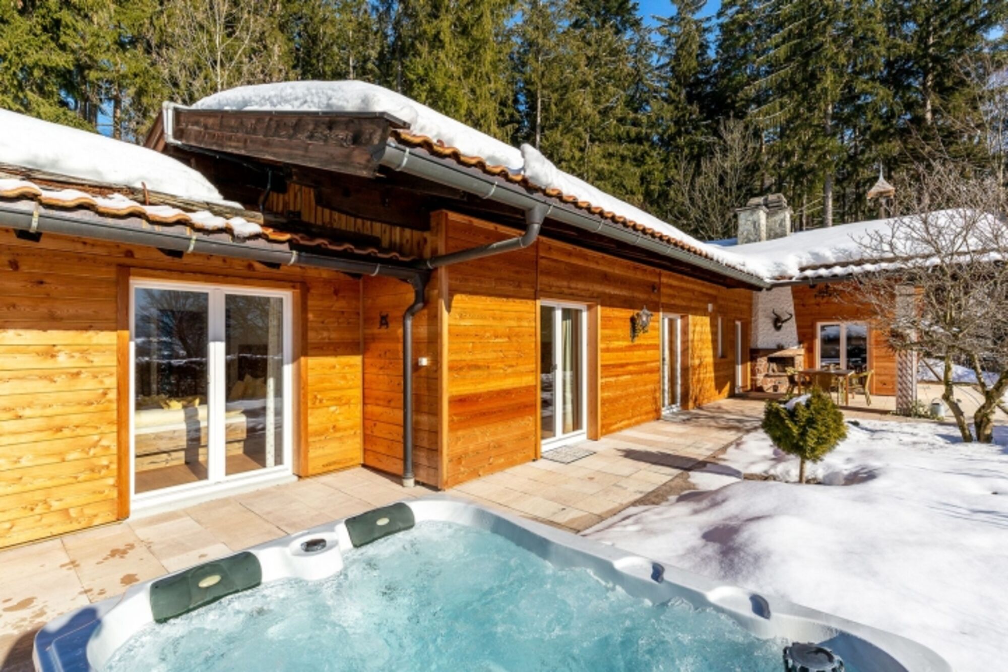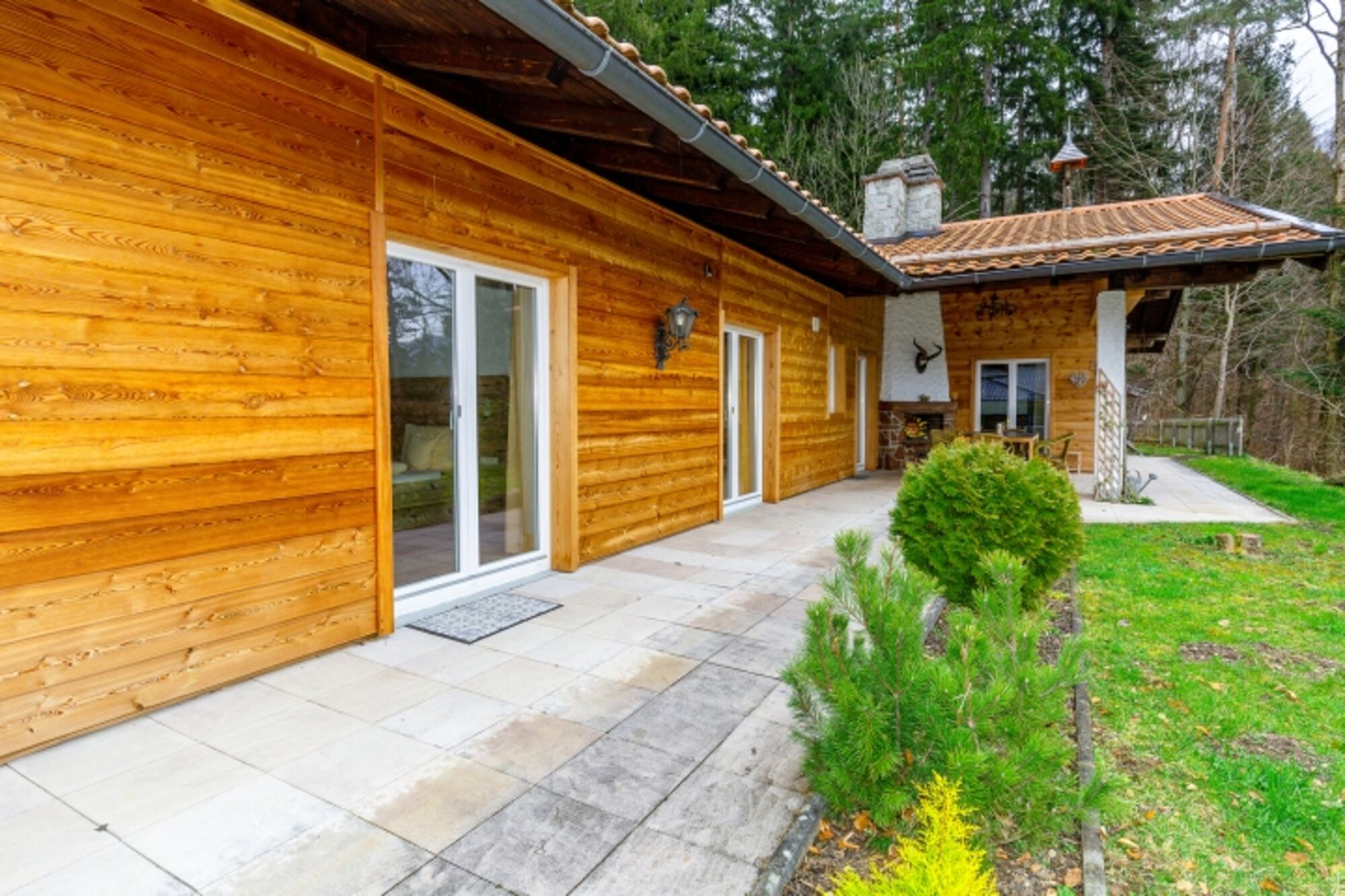 Wald-Chalet mit Whirlpool, Sauna und umzäuntem Garten