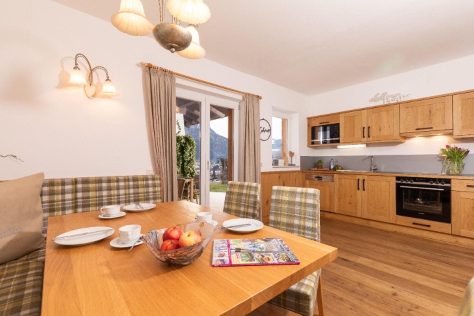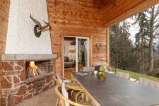 Kaminromantik im Wohn-/Esszimmer und auf der überdachten Terrasse