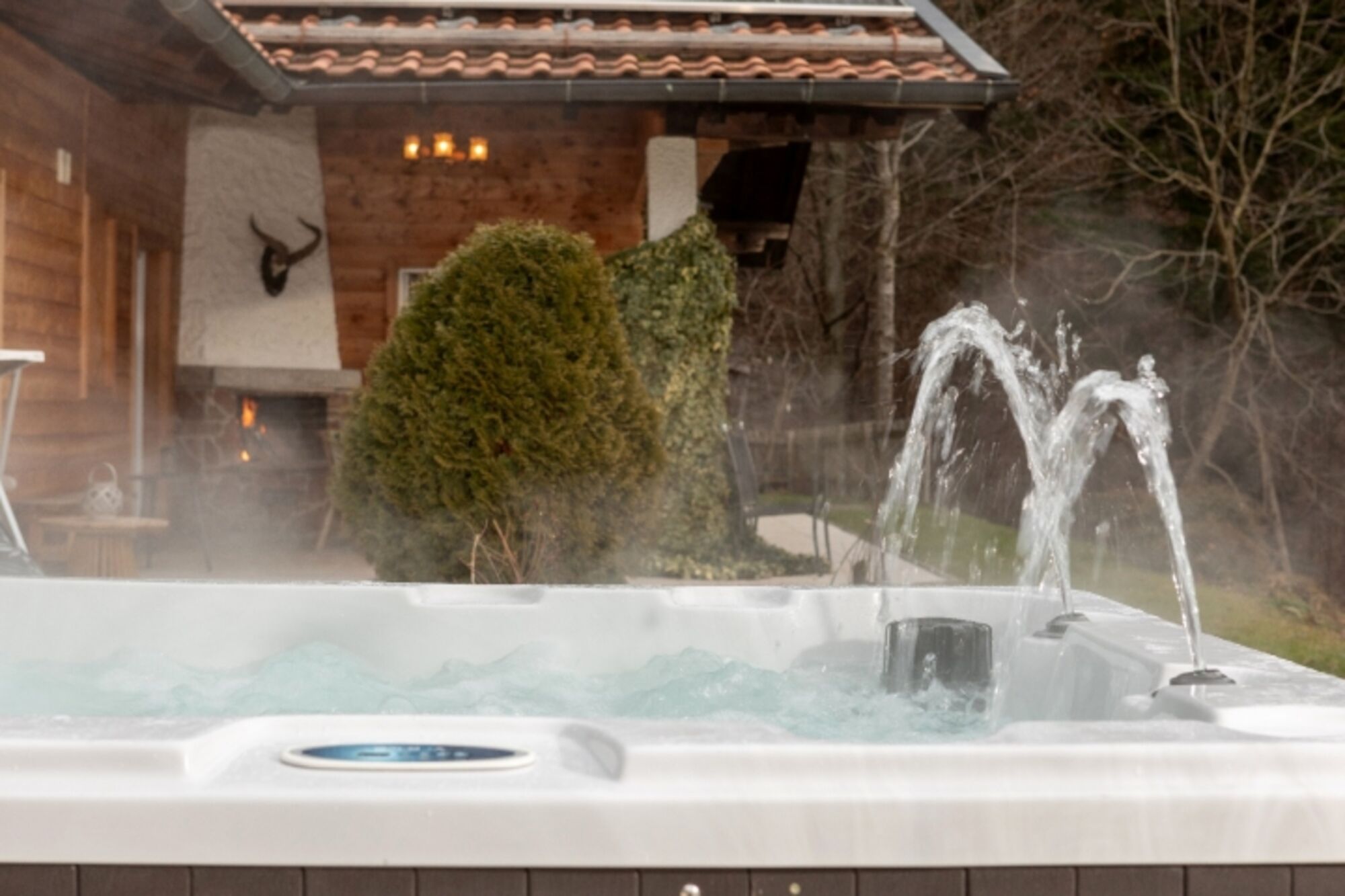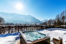 ganzjährig beheizter Whirlpool im Außenbereich mit traumhaftem Bergblick