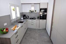 Modernste, komplett eingerichtete offene Einbauküche (Kühl-Gefrierkombination, Spülmaschine, Backofen, Mikrowelle, Cerankochfeld, Abzugshaube, Nespresso-Kaffee-Kapselmaschine und Kaffee-Filtermaschine, Toaster, Wasserkocher etc.) und Waschmaschine.