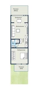 Die Ferienwohnung verfügt über zwei Terrassen mit Ost- und Westausrichtung.