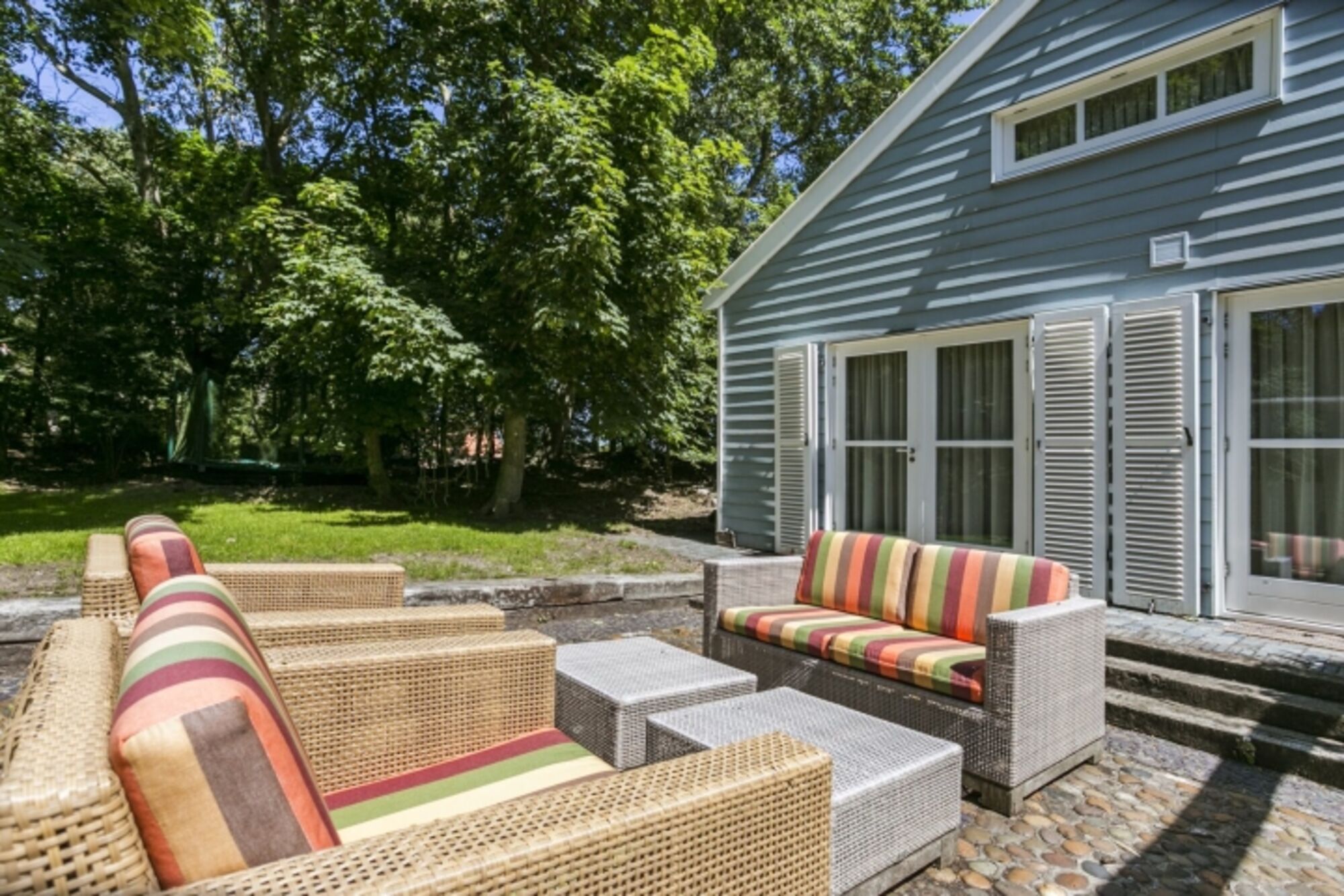 Im Gartenbereich haben Sie viele Möglichkeiten es sich gut gehen zu lassen: Sei dies nun beim Frühstück vor dem Haus mit Weitblick in die Natur und traumhafter Umgebung, in der Rattan-Sitz-Lounge beim Aperitif auf der Südwest Seite des Gartens, oder in einer der vielen weiteren Sitz- und Liegegelegenheiten in der Sonne oder im Schatten. Auch die Außen Dusche wird immer gerne benutzt. Der Grillmeister kann hier ebenfalls sein Können zeigen! Das Trampolin bereitet sicher den Jugendlichen (oder Junggebliebenen!) viel Freude.