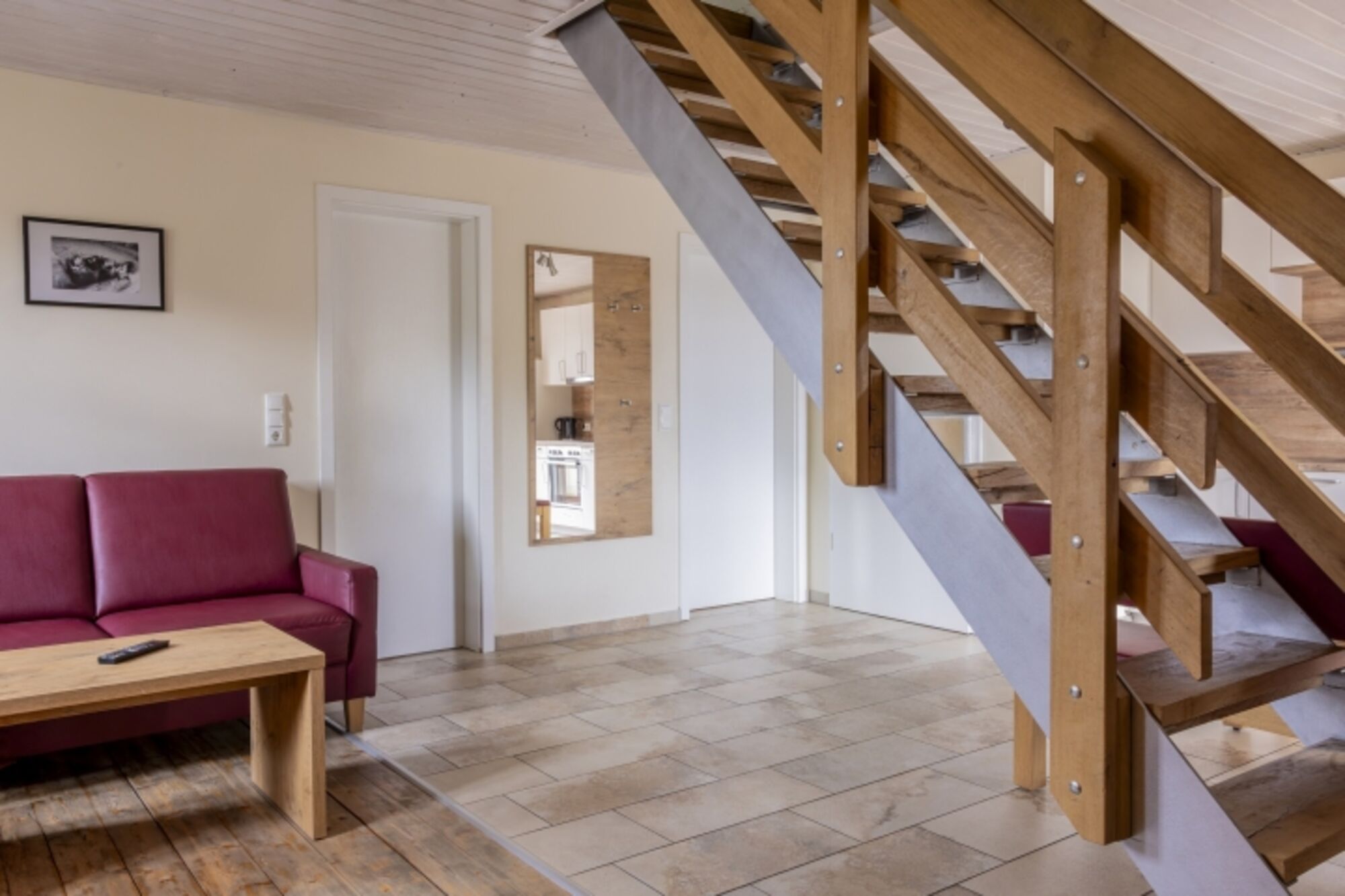 Die Ferienwohnung hat direkten Anschluss zu unserem großzügigen Hofgelände. Fellnasen sind bei uns herzlich Willkommen.