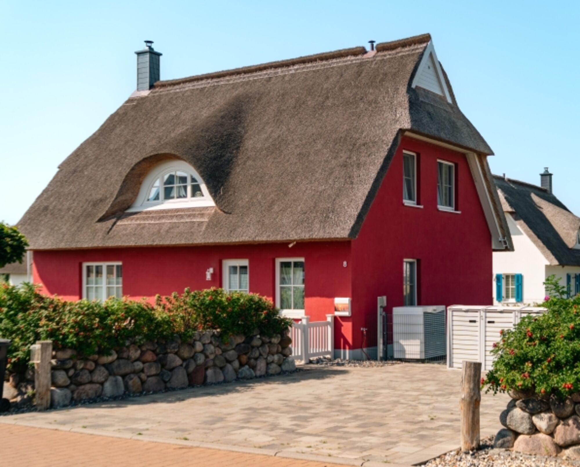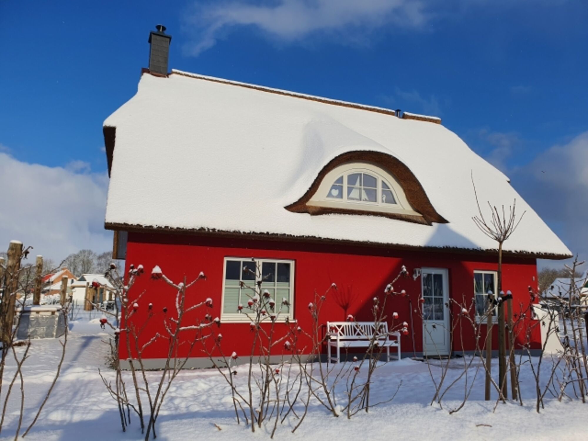 Exklusives neues Reetdachferienhaus am Meer, mit Sauna und Kaminofen. Komplett eingezäunt!