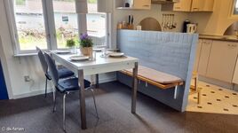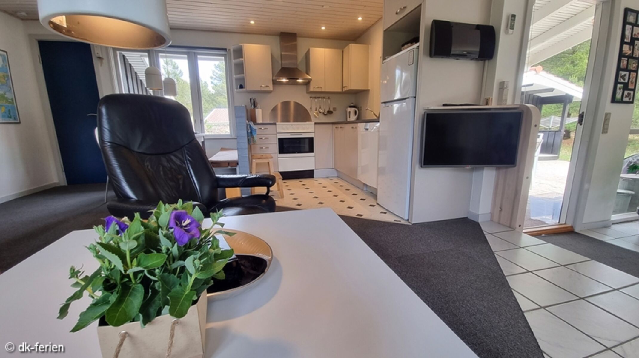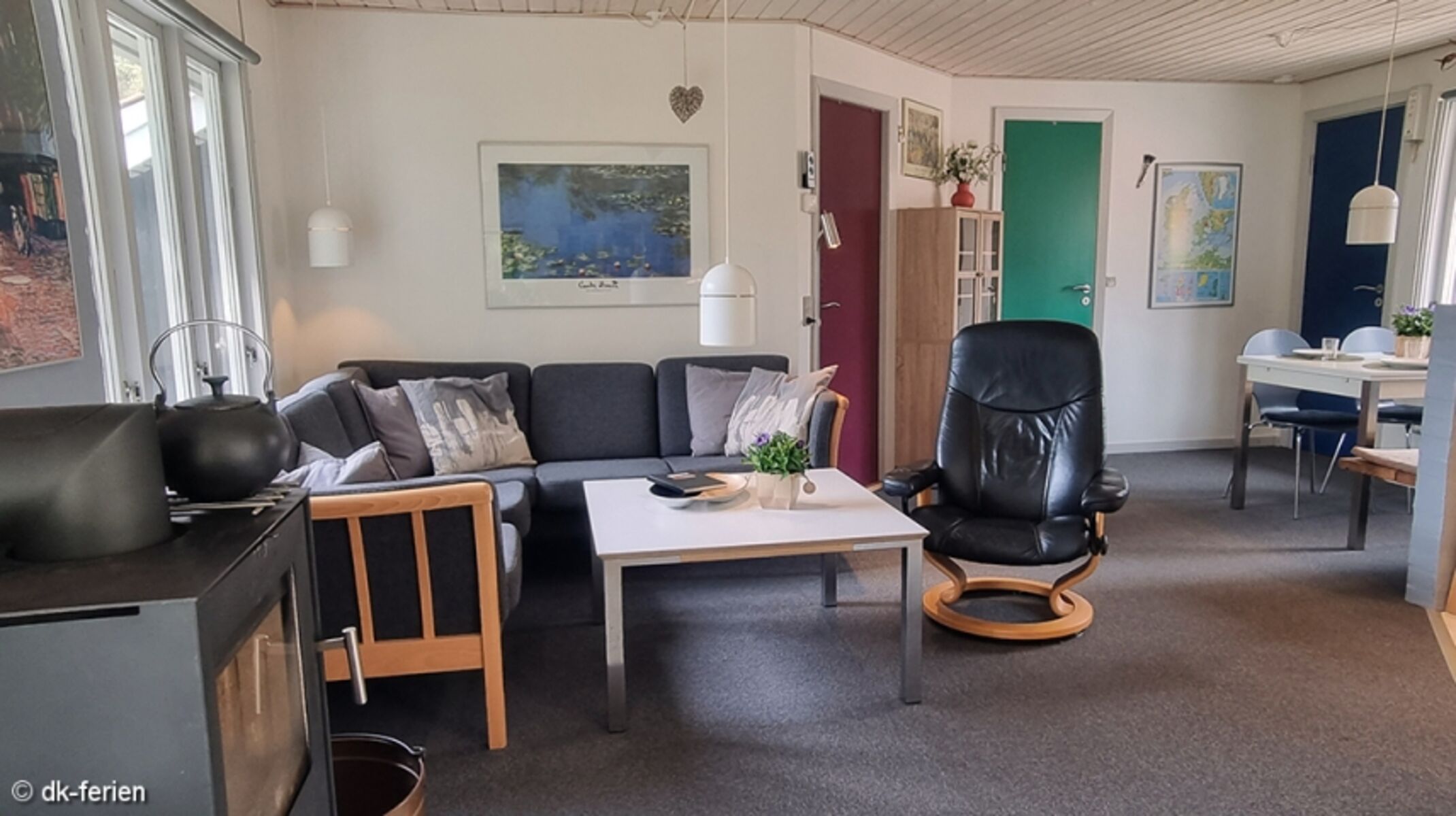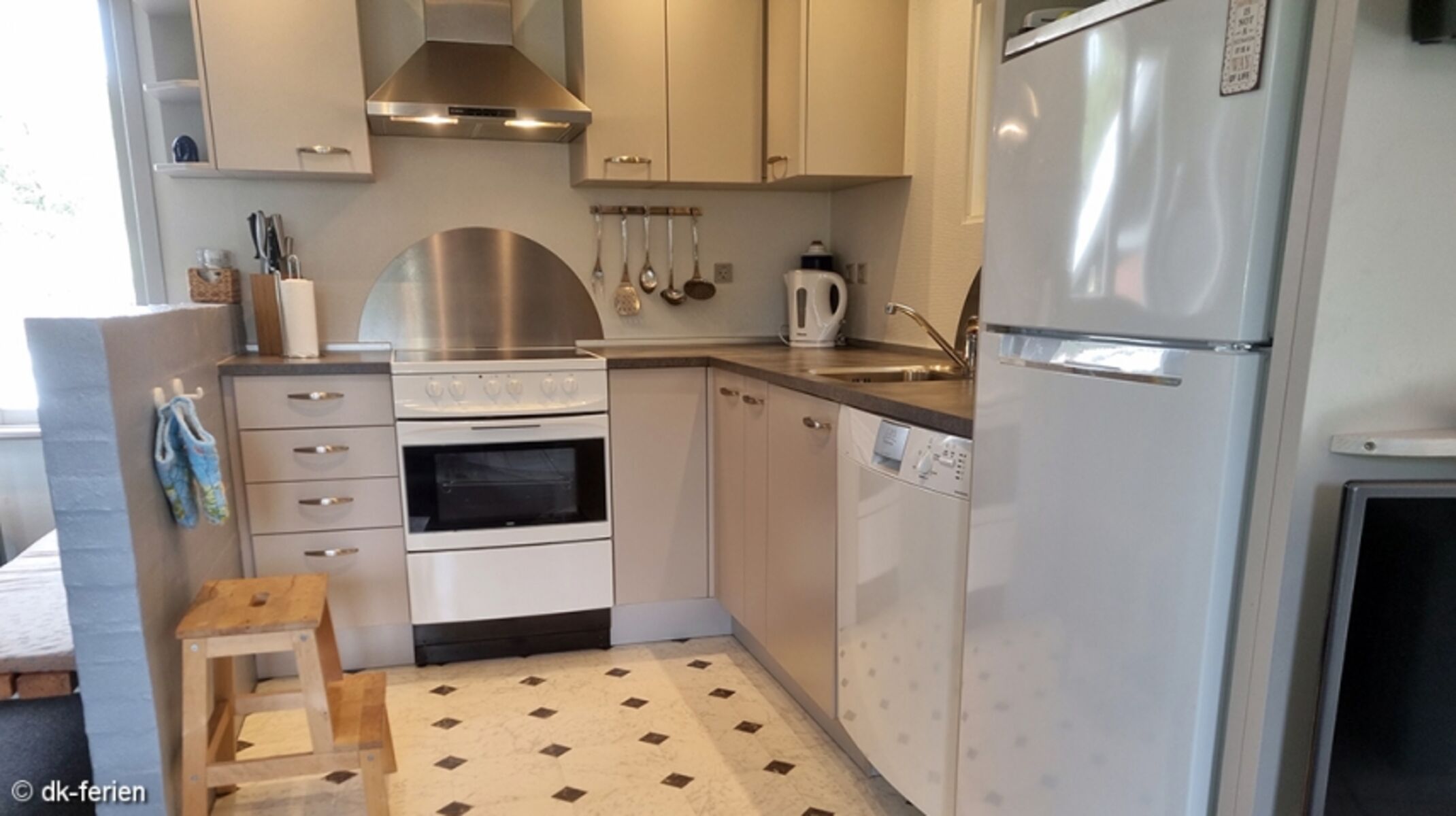 Das Haus empfängt seine Gäste mit einer hellen und freundlichen Atmosphäre. Direkt hinter dem Eingang lädt ein gemütlicher Wintergarten zum Verweilen ein. Der Wohn- und Essbereich bildet das Herzstück des Hauses. Hier locken eine bequeme Sofaecke, ein wärmender Ofen und ein TV zu entspannten Film- oder Leseabenden. Die offene, gut ausgestattete Küche ist praktisch in den Essbereich integriert, was die Zubereitung und das Servieren von Mahlzeiten erleichtert.