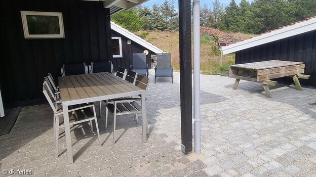 Das gemütliche Ferienhaus liegt in der wunderschönen westjütischen Landschaft des beliebten Ferienorts Blåvand und eignet sich ideal für Ausflüge in die abwechslungsreiche Umgebung und an den herrlichen Nordseestrand. Auf dem weitläufigen, eingewachsenen Grundstück können kleine Gäste nach Herzenslust spielen. Eine Sandkiste, Schaukel und eine spannende Baumrutsche sorgen für Spaß und Abenteuer. Die Erwachsenen entspannen währenddessen auf den drei teilweise überdachten Terrassen beim Grillen, Sonnenbaden und Abschalten. Ein abschließbarer Schuppen mit 220 V Steckdose steht für das Laden von E-Bikes bereit (Ladekabel bitte selbst mitbringen).