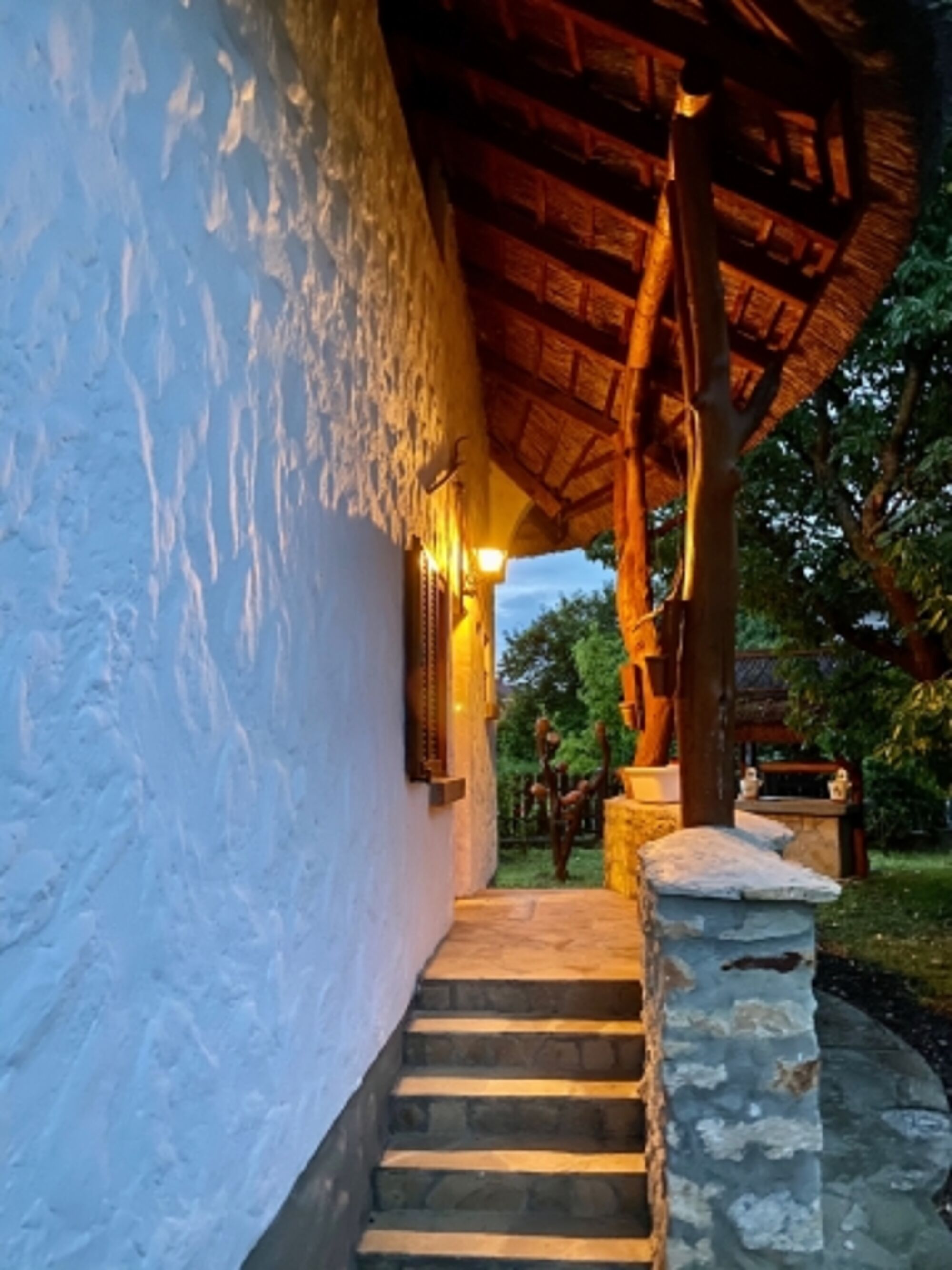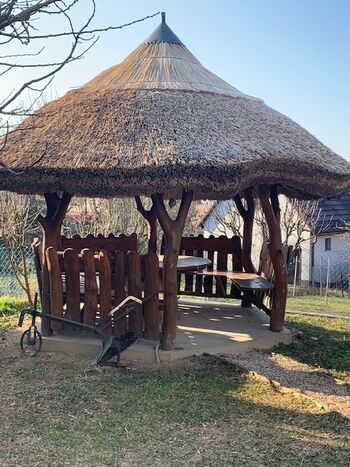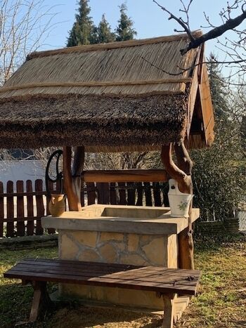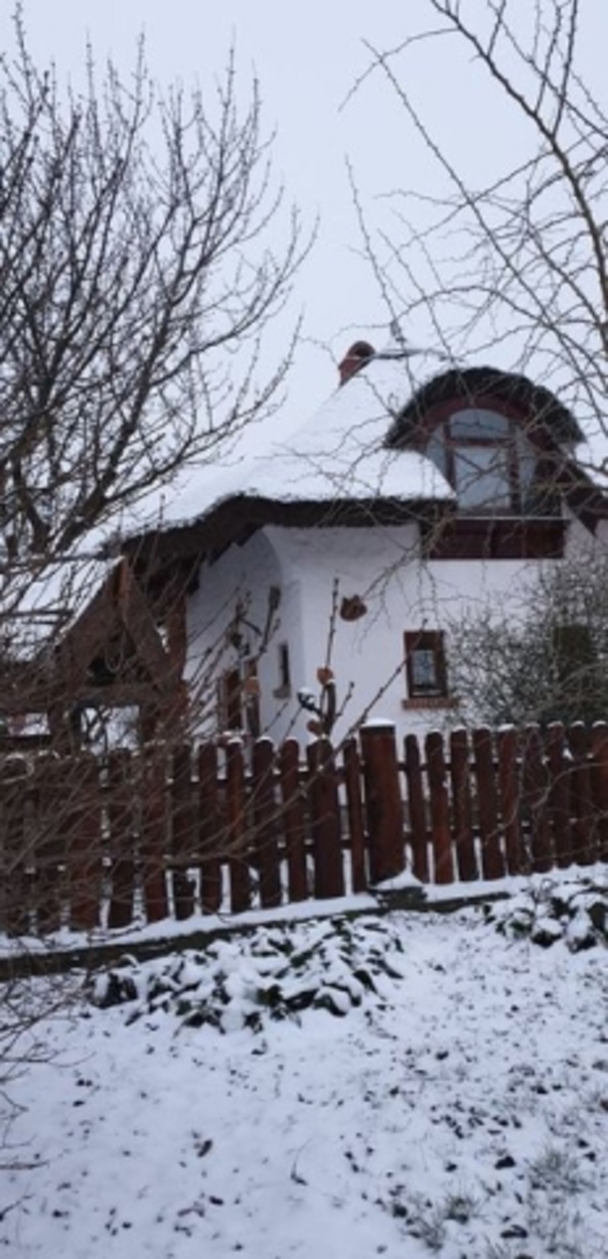 Das Haus wurde 2000 in ökologischer Bauweise nach dem Vorbild eines typische ungarischen Hauses, das in Szigliget gesehen wurde, von einem Architekten errichtet. Es verzichtet gänzlich auf Kunststoffe und wurde aus Naturmaterialien wie Ziegel, Holz, Reet, Kalkfarbe errichtet.