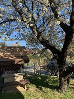 Es bietet 2 Schlafzimmer, eines davon mit einem schönen Panorama auf Heviz und den Heilsee. Es verfügt über ein ca.30 qm großes Wohnzimmer, Küche, Bad und 2 Toiletten. Die Wohnfläche beträgt ca. 100 qm, der umzäunte Garten ca. 450 qm. Im Garten gibt es zahlreiche Obstbäume: Kirschen, Feigen, Mirabellen.