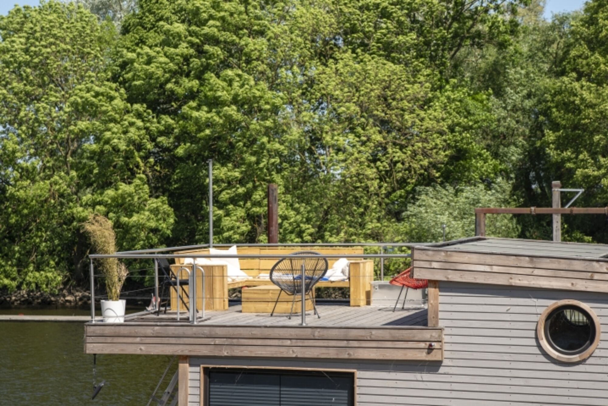 Dem Wasser ganz nah: Tolles Tiny-Hausboot mit Holzofen und Dachterrasse
