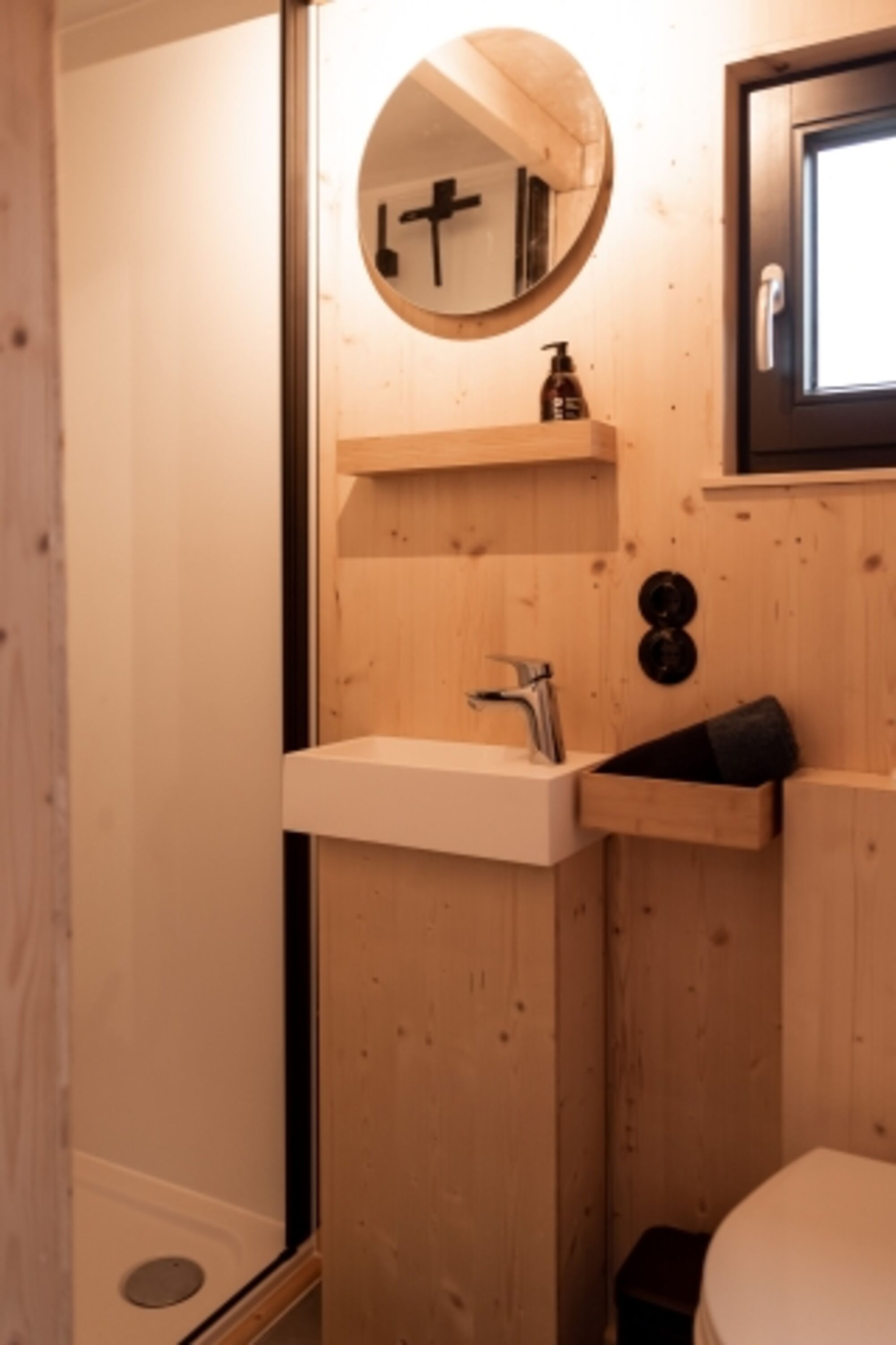 Es gibt einen Smart-TV (32-Zoll-Bildschirm) an der Wand, mit dem ihr euch mit mitgebrachtem Smartphone oder Laptop verbinden könnt. WLAN steht euch kostenlos zur Verfügung.