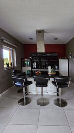 - Komplett ausgestattete Küche: Mit Kochinsel, Kühl-Gefrierkombination, Mikrowelle und einem Kaffeevollautomaten
