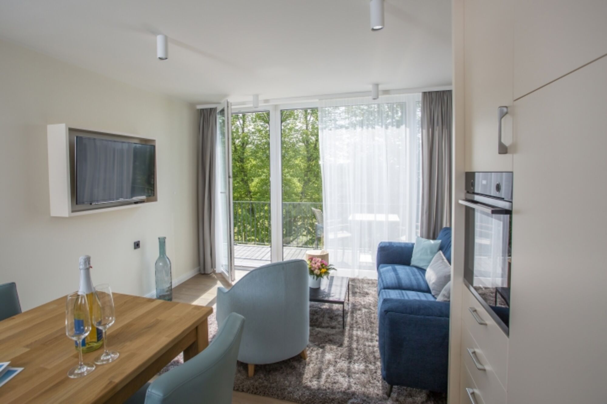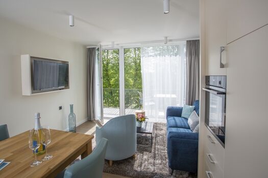 Die eleganten Aurora Appartements im Herzen von Waren (Müritz) überzeugen mit einer großzügigen Wohnfläche von 51 bis 62 Quadratmetern und bieten damit ideale Voraussetzungen für einen entspannten und komfortablen Aufenthalt. Die stilvolle Einrichtung auf gehobenem Niveau vereint modernes Design mit natürlichen Materialien und schafft eine Atmosphäre zum Wohlfühlen. Ob Sie Erholung suchen, sportlich aktiv sein möchten oder einfach die Schönheit der Mecklenburgischen Seenplatte genießen wollen – im Resort finden Sie die perfekte Kombination aus Natur, Stil und Komfort. Hier treffen stilvolle Ästhetik, entspannte Freizeitmöglichkeiten und die reizvolle Umgebung aufeinander – für einen unvergesslichen Urlaub zu jeder Jahreszeit.