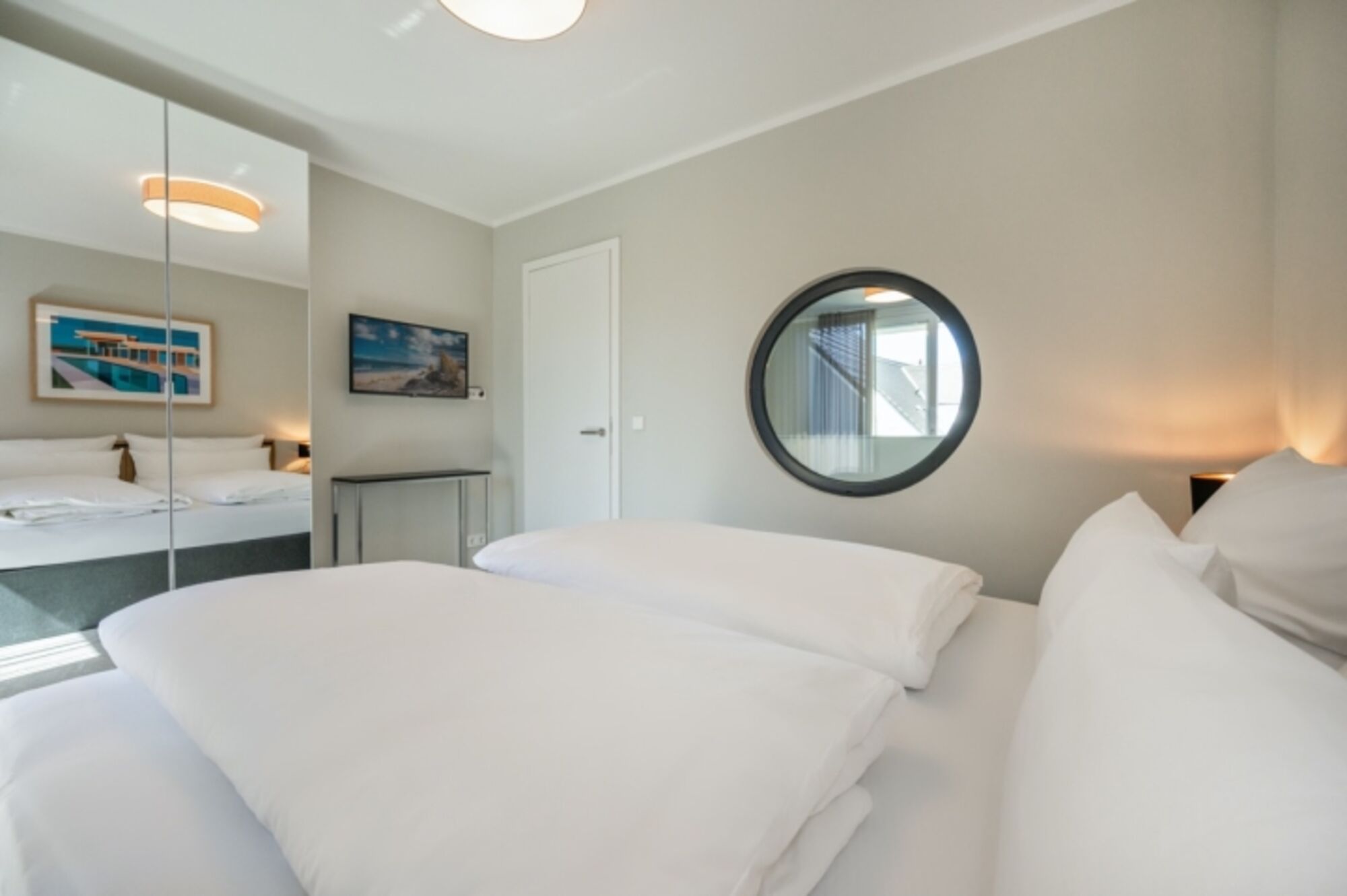 Modernes Doppel-Apartment mit Meerblick, Terasse, Balkon -150m v. Strand