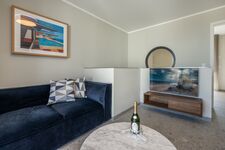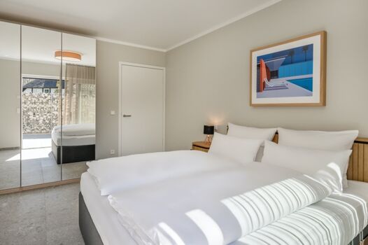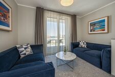 Das ca. 85 m² große Apartment befindet sich im Erdgeschoss des Nauticum. Mit zwei Schlafzimmern ist dieses Apartment für bis zu 4 Personen ausgelegt. Die voll ausgestattete Küchenzeile lässt keine Wünsche offen. Auf der Terrasse befinden sich Liegestühle, ein Esstisch, eine gemütliche Lounge sowie ein großer Grill, um gemeinsam die Zeit zu genießen. Der Balkon mit Meerblick rundet das Apartment ab.