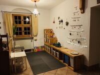 Im Erdgeschoss stehen insgesamt 3 Räume zur Verfügung, die unterschiedlich aufgebaut sind. Von der Weinstube zur Bauernstube über ein gemütliches Zimmer in dem auch ein Ecksofa steht. Es gibt jede Menge Spiele, Dart, Airhockey, Bücher und für den Nachwuchs eine extra Spieleecke sowie einen extra Trink und Futternapf für die Vierbeiner. Da sich der Waldhof zu Grillenburg sehr gut zur Entspannung eignet, finden alle 14 Tage mittwochs Yogakurse (nicht im Preis enthalten) statt an denen man mit vorheriger Anmeldung teilnehmen kann. Ebenso hin und wieder geführte Hundewanderungen sowie Pferdekutschfahrten. Mobile sowie stationäre Massage kann zusätzlich gebucht werden. Ich habe mich ganz bewusst gegen Fernseher im Haus entschieden, sodass Sie zur Ruhe kommen und Ihre Auszeit voll und ganz genießen können.