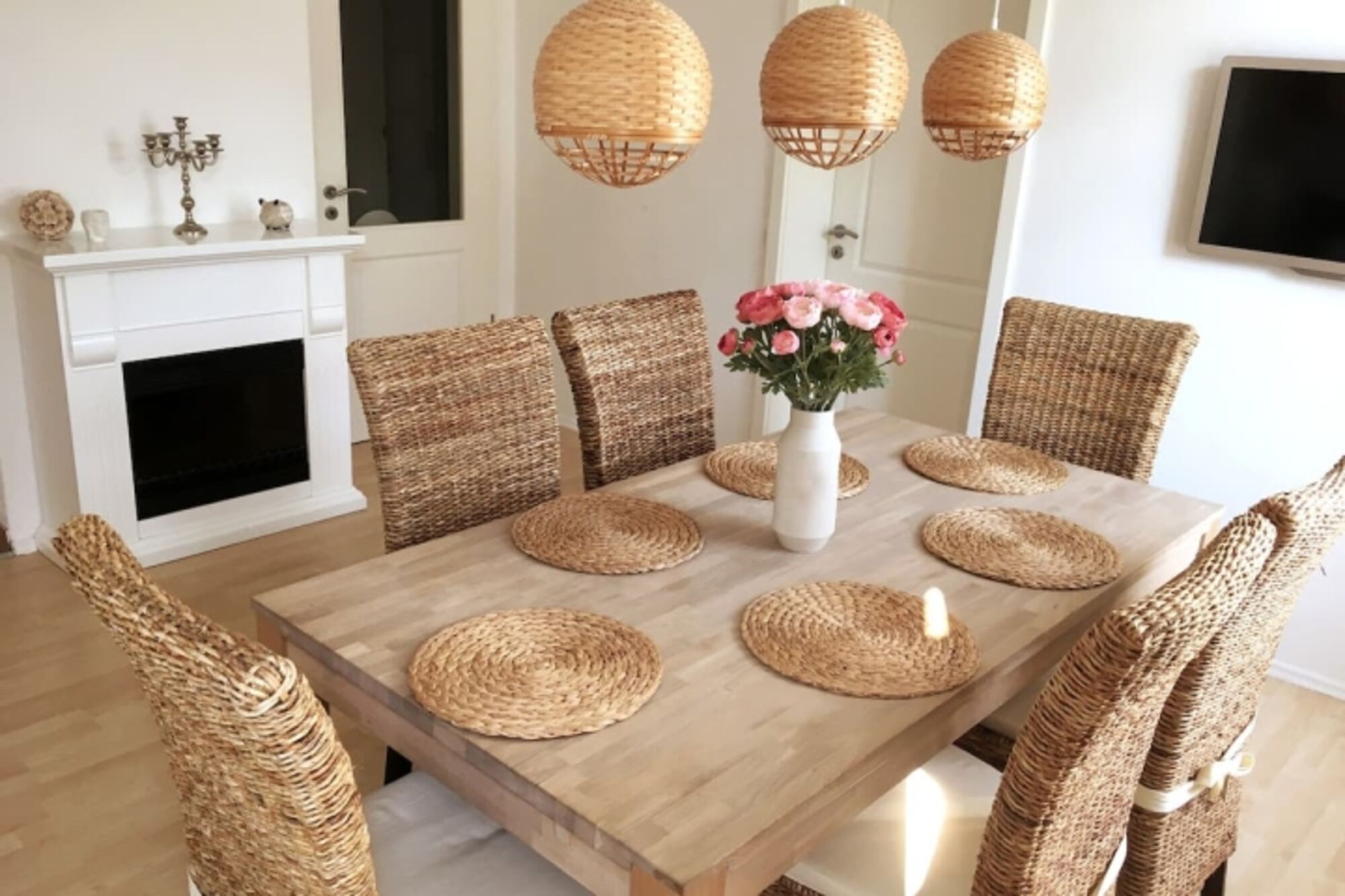 Am ausziehbaren Holztisch könnt Ihr Eure Urlaubstage bei einem Frühstück starten oder nach einem langen Tag am Strand von Warnemünde ausklingen lassen.