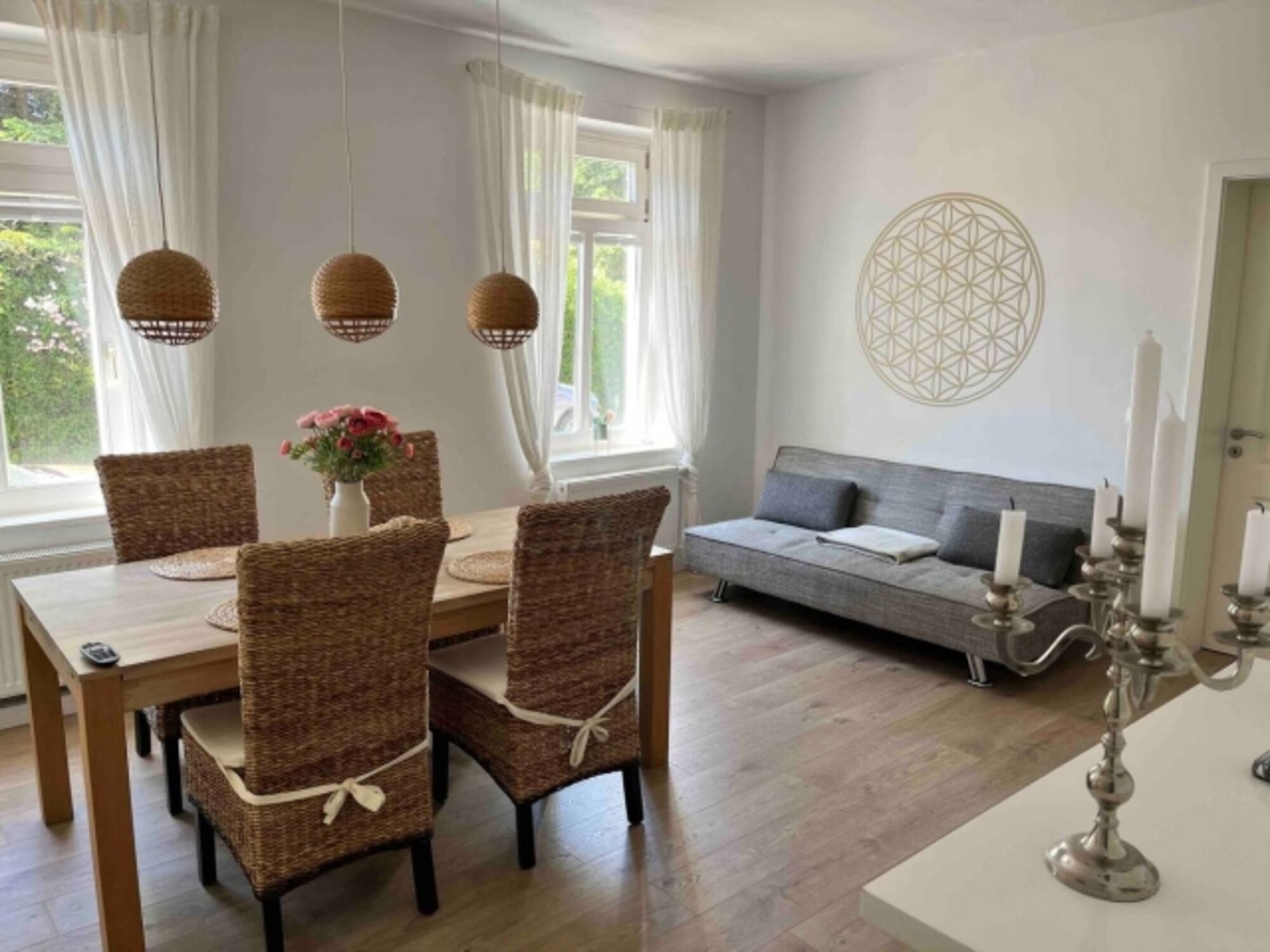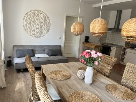 Das Apartment besteht aus 2 großen, liebevoll eingerichteten Schlafzimmern und einem gemütlichen Wohn-/Essbereich mit offener und voll ausgestatteter Küche (2025 neue Küche).