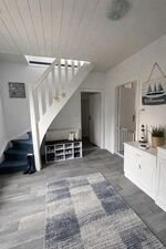 Wir haben für Sie die große Einbauküche mit einer Kühl-Gefrierkombination, Spülmaschine, Herd und Backofen, Filterkaffeemaschine, Waffeleisen, Toaster, Sandwichmaker, Wasserkocher und einem Monsieur Cuisine ausgestattet. Der Wohnbereich verfügt über zwei Echtledersofas und einen Smart-TV, auf dem Sie Ihr gewohntes Fernsehprogramm schauen können. Im Sideboard haben wir Ihnen ausgewählte Gesellschafts- und Kartenspiele hinterlassen – damit steht einem lustigen Spieleabend nichts mehr im Wege! Ebenfalls im Erdgeschoss haben wir für unsere kleinen Gäste ein Spielzimmer eingerichtet. Hier finden Sie einen Airhockeytisch, ein Puppenhaus, Spielzeugautos, eine Tunnelraupe und noch vieles mehr. Für die mitreisenden Teens gibt es im Spielzimmer einen eigenen Bereich zum Chillen und Zocken mit zwei Sitzsäcken und einem Smart-TV, an dem entweder die von Ihnen mitgebrachte Spielekonsole angeschlossen oder über die TV-Apps ein ausgewähltes Programm angeschaut werden kann. Weiterhin befinden sich im Erdgeschoss ein großes Tageslichtbad mit Doppelwaschbecken, Badewanne, Dusche und WC sowie ein Gäste-WC und ein Hauswirtschaftsraum, ausgestattet mit Waschmaschine und Trockner sowie einem Staubsauger.