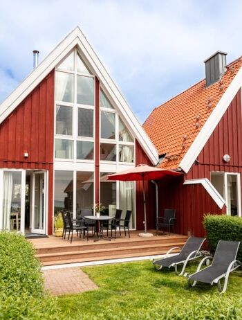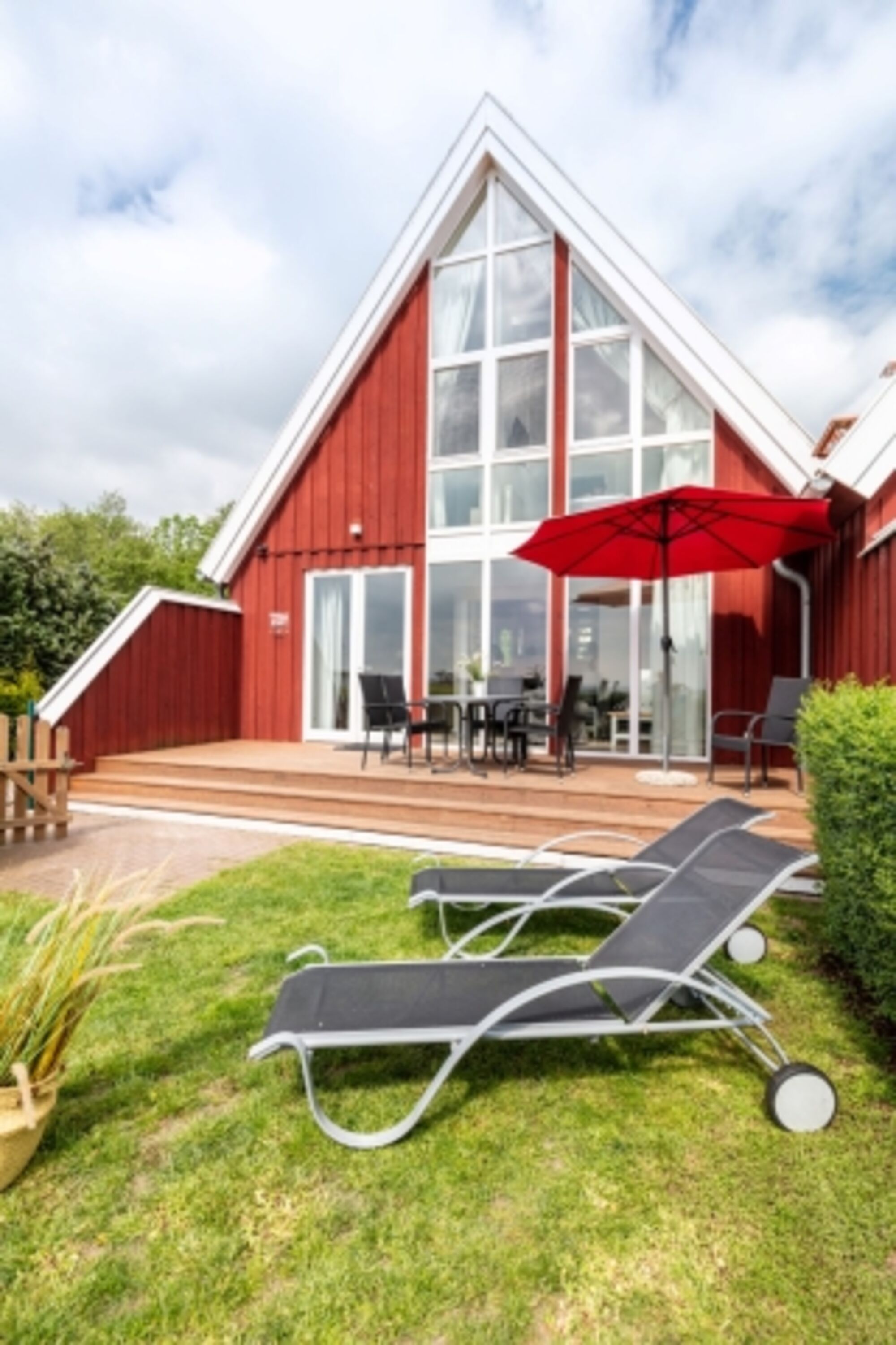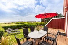Sonne tanken kannst Du auf der erhöhten Holz-Terrasse. Gartenmöbel, Liegen und ein Sonnenschirm stehen für Dich bereit. Zum Strand gelangst Du über den eigenen Zugang in wenigen Schritten.