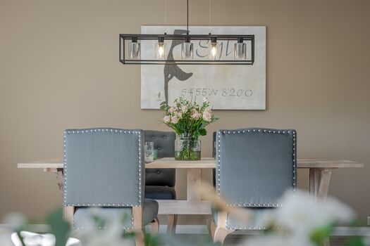 Der großzügige Wohnbereich mit gemütlichem Sofa und einem 50-Zoll-TV lädt zum Entspannen ein. Für gemeinsame Mahlzeiten steht ein großer Esstisch bereit, und die moderne, offene Küche ist bestens ausgestattet – inklusive Nespresso-Maschine, Siemens-Geräten und allem, was das Herz eines Hobbykochs begehrt.
