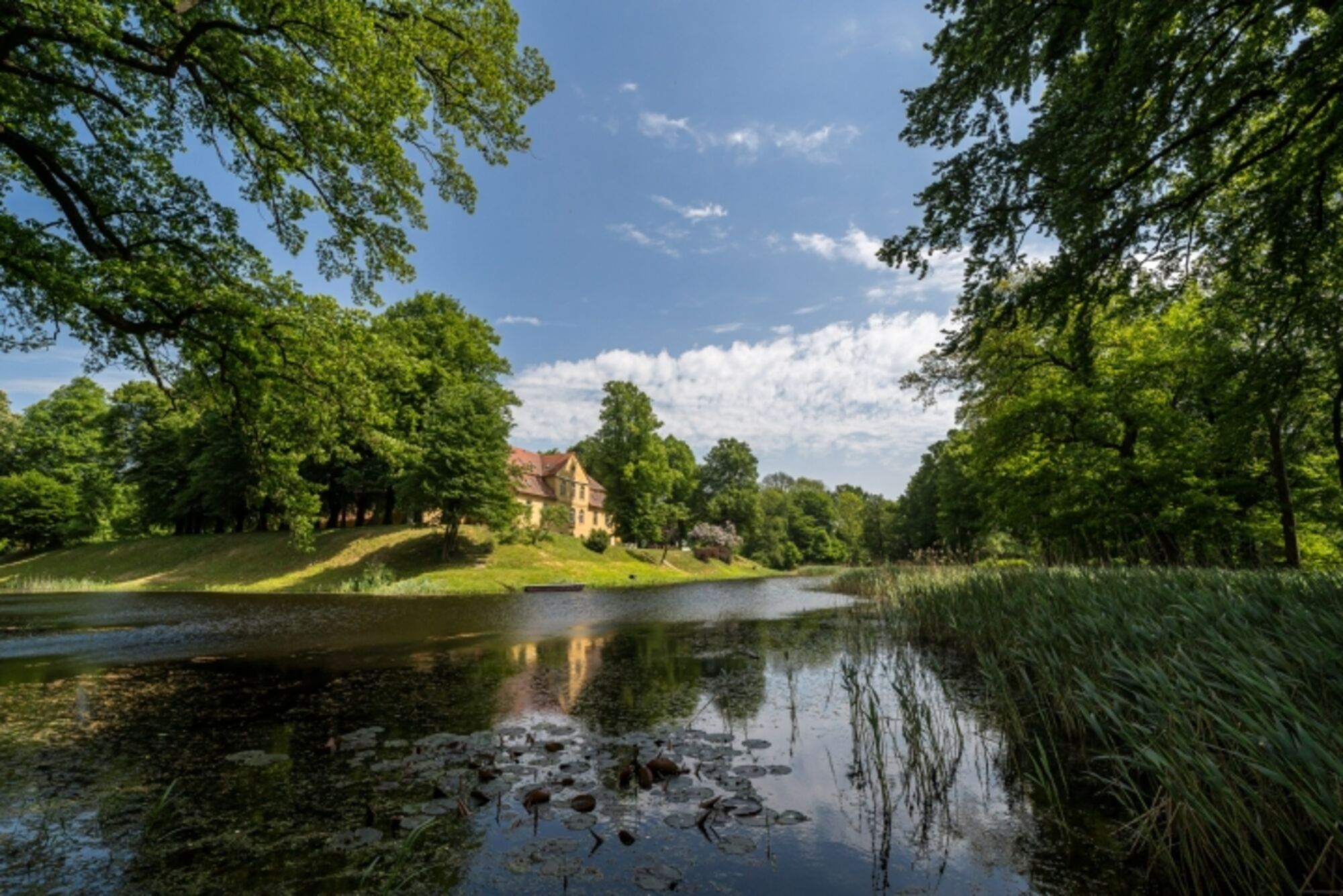 Schloss Lühburg liegt wie eine Insel Im Mecklenburger ParkLand und ist von einem malerischen Burggraben umgeben.