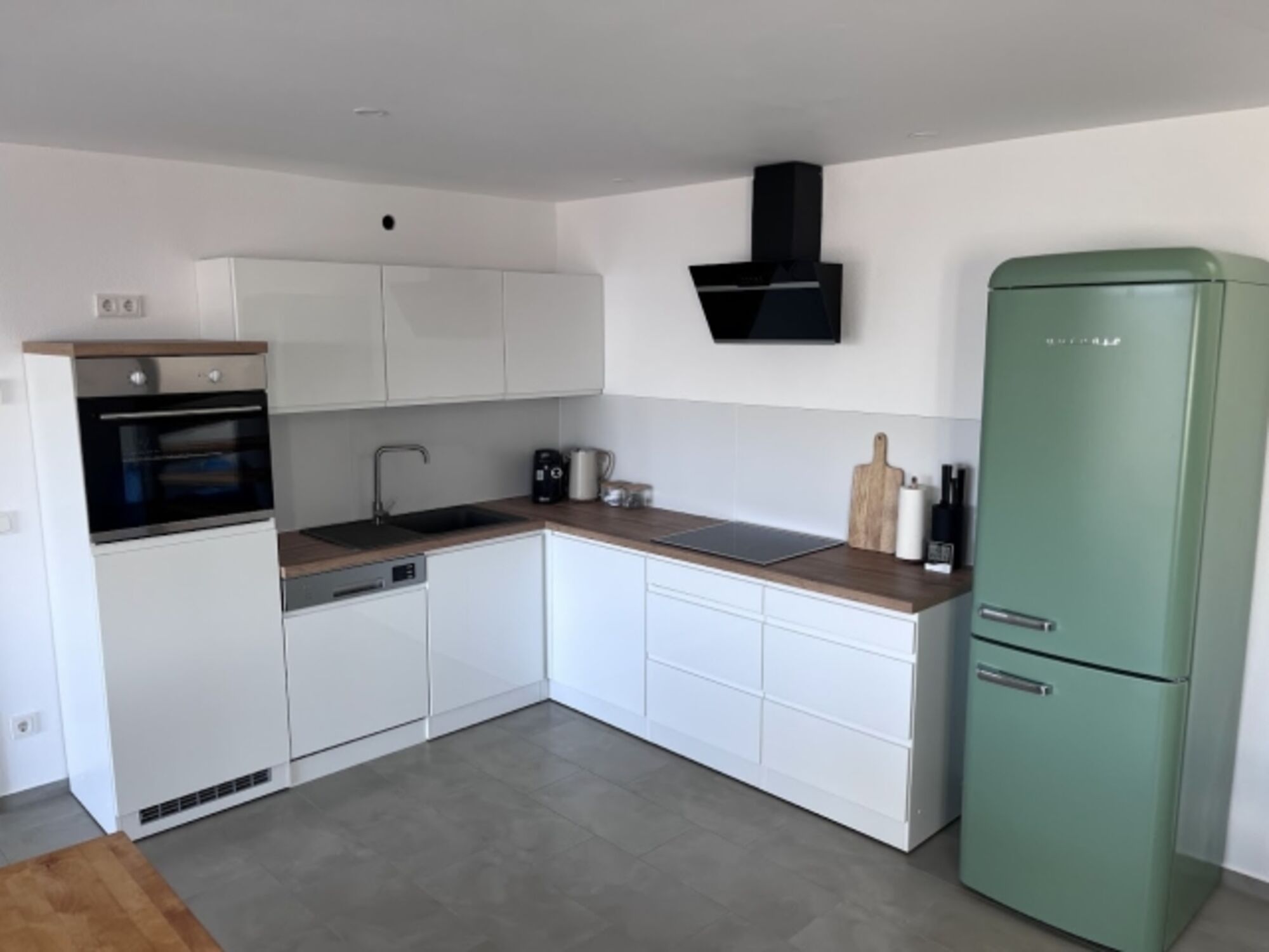 4-Platten Herd, Cerankochfeld, Dunstabzugshaube, Kühlschrank mit Gefrierfach, Gefrierschrank, Nespresso-Automat, Korkenzieher / Flaschenöffner, Gewürze (Salz, Pfeffer, Zucker), Öl / Essig, Geschirrhandtücher, Mülltüten, Essplatz in der Küche